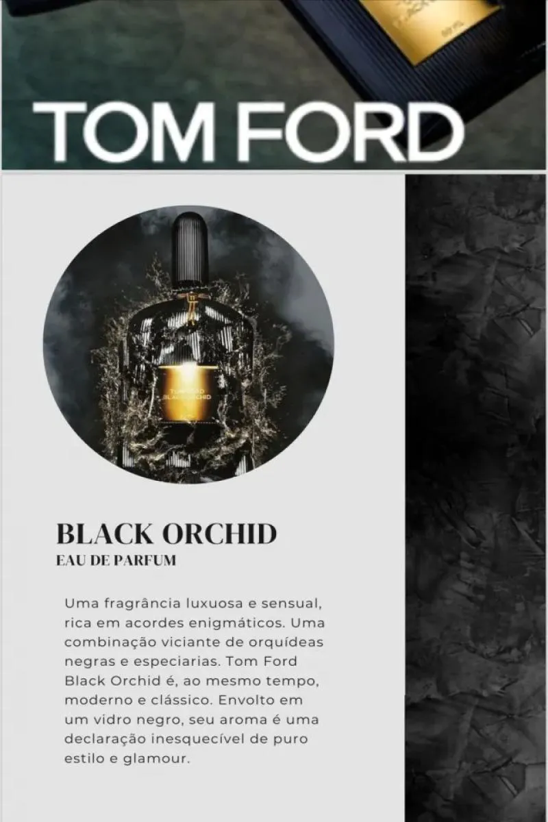 ”Black Orchid é um rico blend de especiarias e escuridão que te envolvem, para estarem perto - cada vez mais - de vocês. Sinta o poder perfeito - ao mesmo tempo raro e extraordinário.