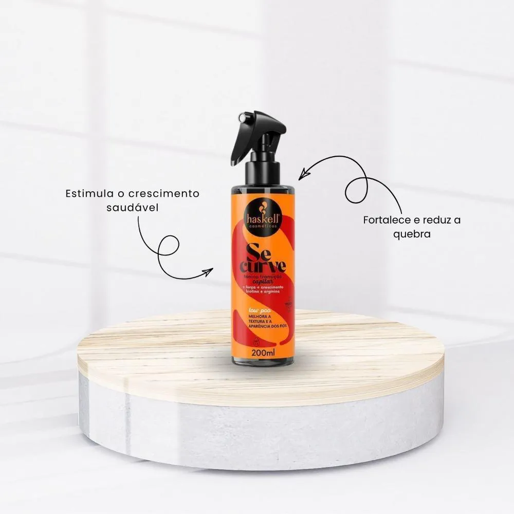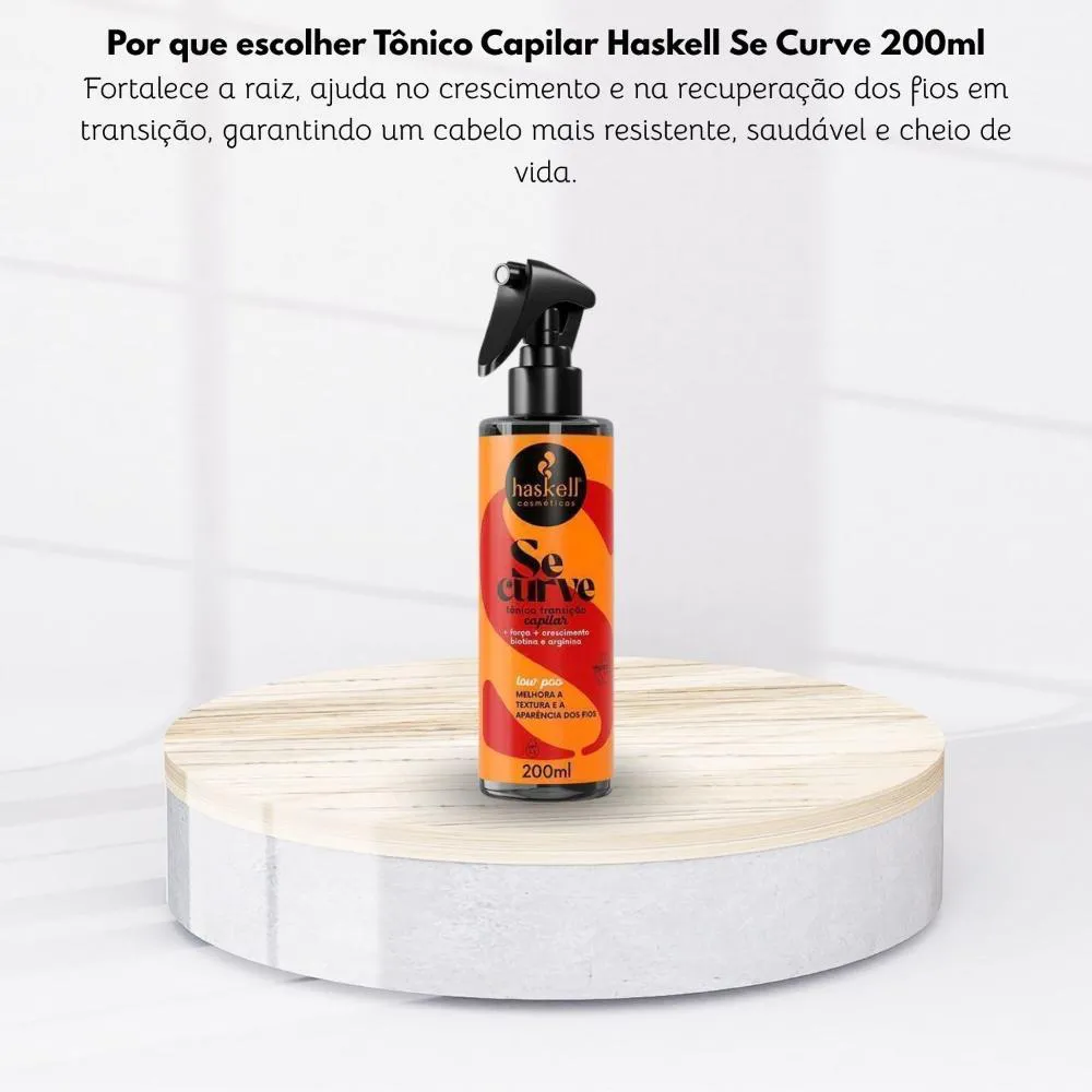 01 – Tônico Capilar Haskell Se Curva Estímulo Crescimento 200ml Para um protocolo completo de fortalecimento e definição:shampoo Haskell Se Curva