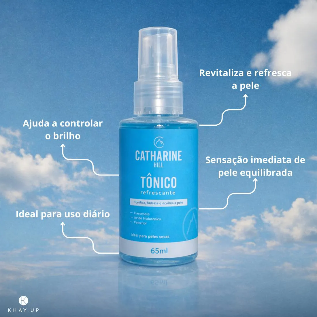 conheça um pouco mais! O Tônico Facial Refrescante da Catharine Hill – Travel Size foi desenvolvido para tonificar, refrescar e equilibrar a pele após a limpeza, respeitando o pH natural e preparando o rosto para a hidratação e a maquiagem. Sua fórmula leve combina ativos como hamamélis, ácido hialurônico, pantenol e extratos calmantes, que ajudam a hidratar, suavizar e acalmar a pele, proporcionando sensação de frescor e conforto ao longo do dia. Ideal para quem busca praticidade na rotina de cuidados faciais ou precisa de um produto compacto para levar na bolsa ou em viagens. Contém: 65 ml Você vai amar! A sensação refrescante é imediata, deixando a pele limpa, tonificada e confortável, sem ressecar. A textura leve é rapidamente absorvida e não deixa resíduos, ajudando a preparar a pele para receber outros produtos de skincare ou maquiagem. Perfeito para uso diário e para quem valoriza um cuidado prático e eficiente. Pega essas dicas! Aplique após lavar o rosto, utilizando algodão ou diretamente nas mãos. Use de manhã e à noite para manter a pele equilibrada e fresca. Combine com hidratante facial para potencializar os resultados. Excelente para usar antes da maquiagem, ajudando na uniformidade da pele. Leve no nécessaire para uso ao longo do dia, principalmente em viagens.
