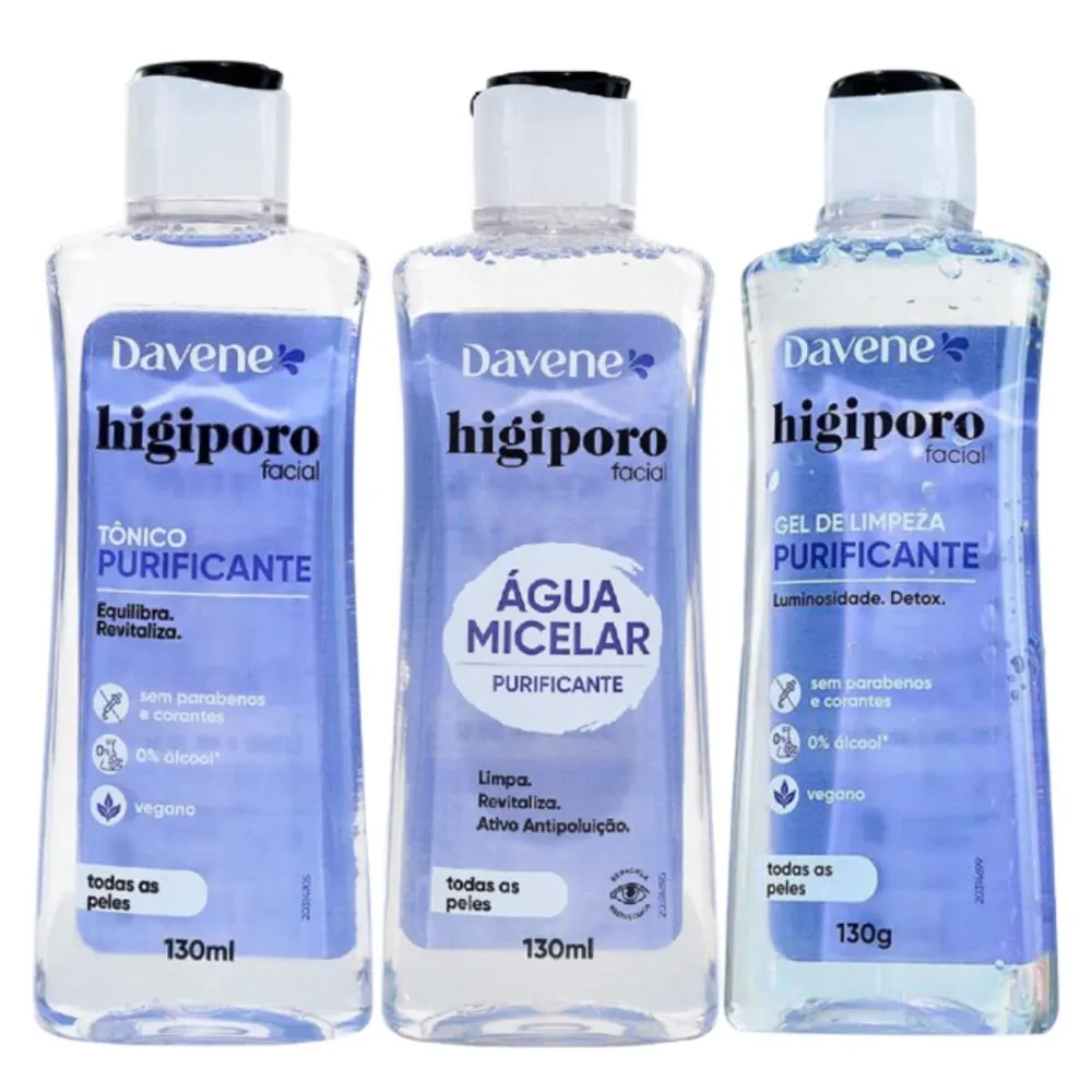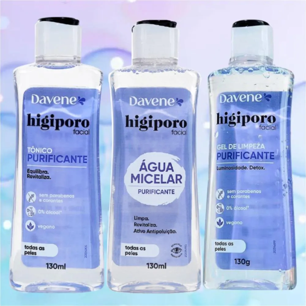 Tônico Sabonete Gel e Água Micelar Todos Tipos Pele Davene