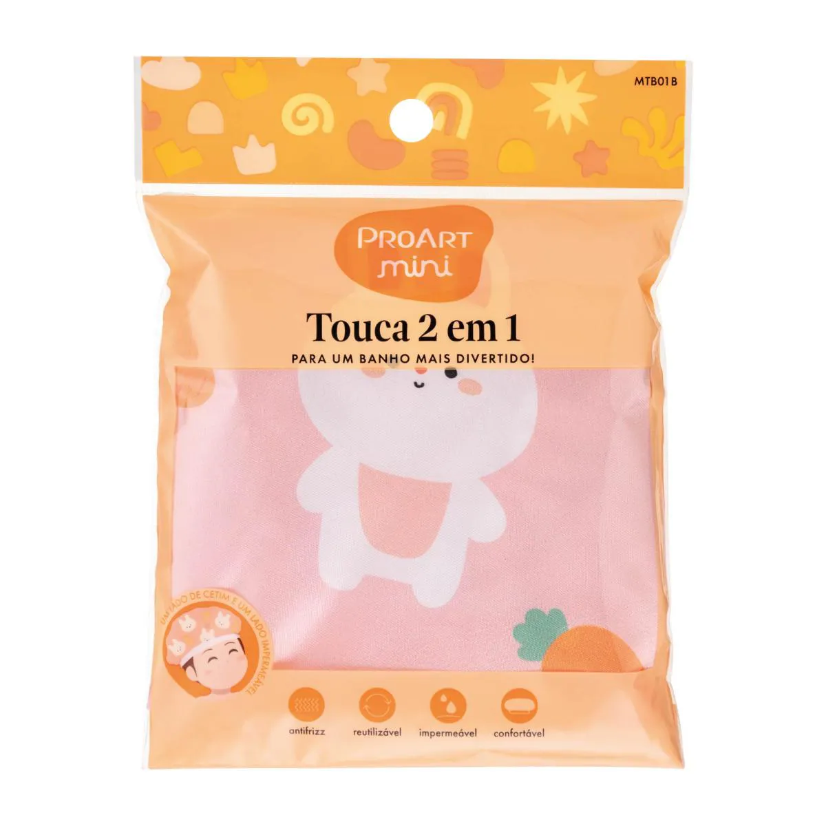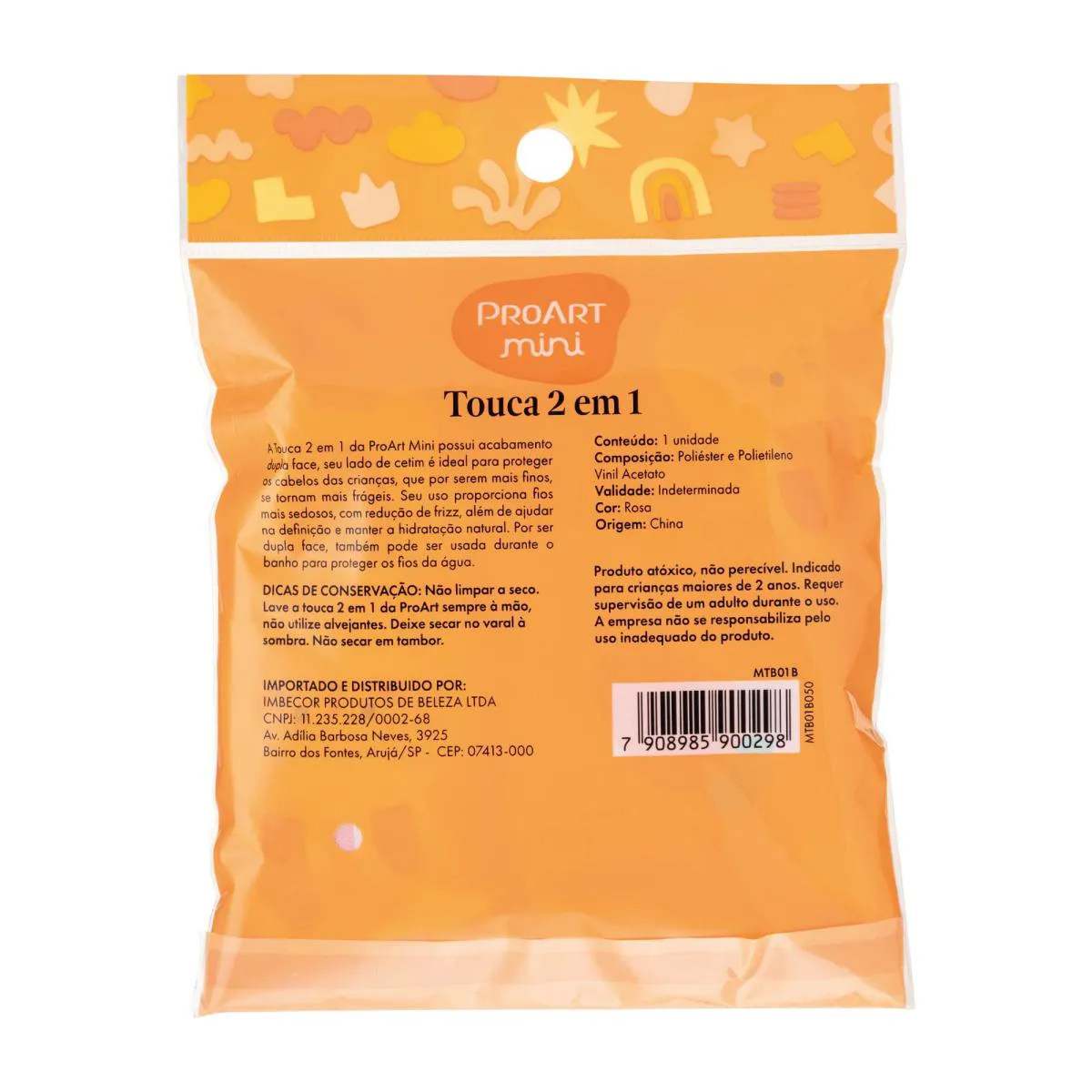 A Touca 2 em 1 da ProArt Mini possui acabamento dupla face, seu lado de cetim é ideal para proteger os cabelos das crianças, que por serem mais finos, se tornam mais frágeis. Seu uso proporciona fios mais sedosos, com redução de frizz, além de ajudar na definição e manter a hidratação natural. Por ser dupla face, também pode ser usada durante o banho para proteger os fios da água.