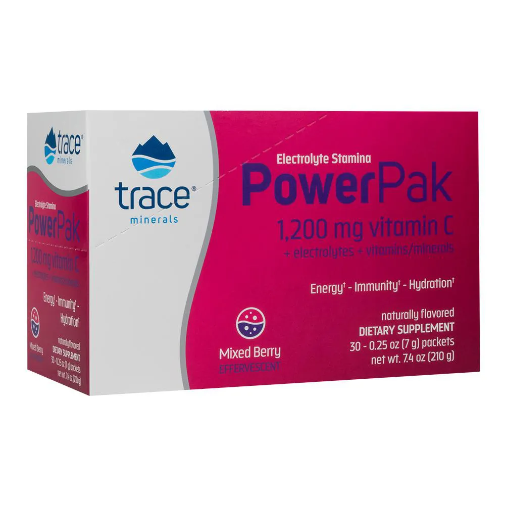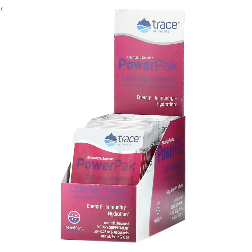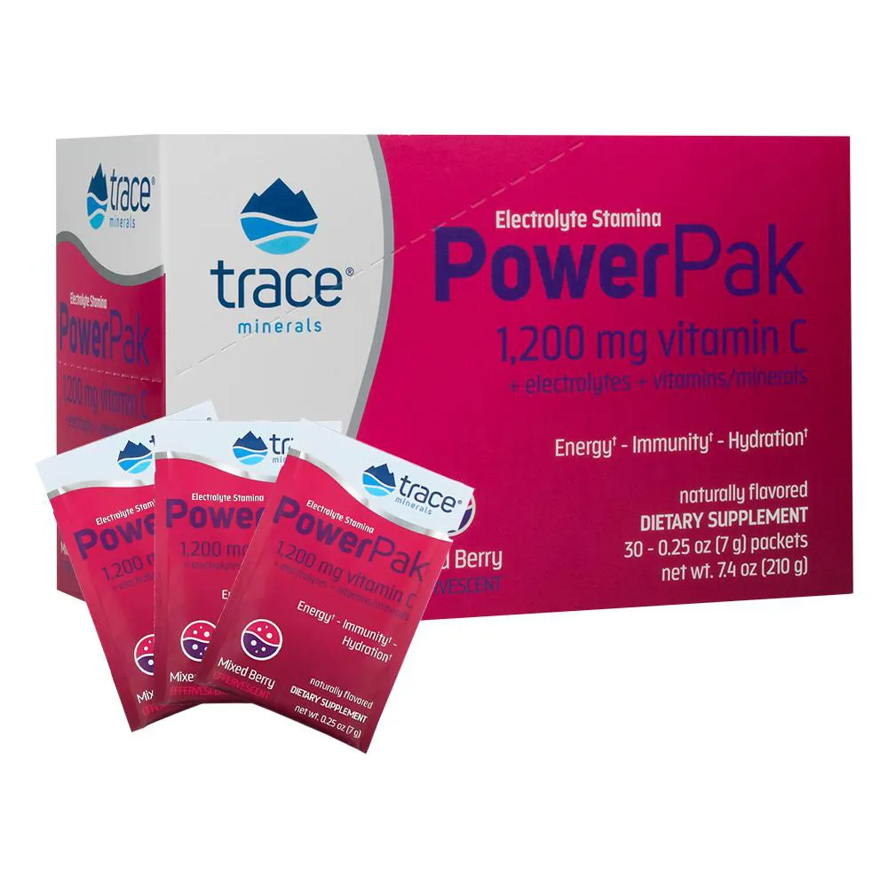O Trace Minerals PowerPak é um suplemento de eletrólitos em pacotes individuais, formulado para fornecer eletrólitos essenciais com sabor de frutas vermelhas. Cada pacote contém uma dose individual de nutrientes minerais.
