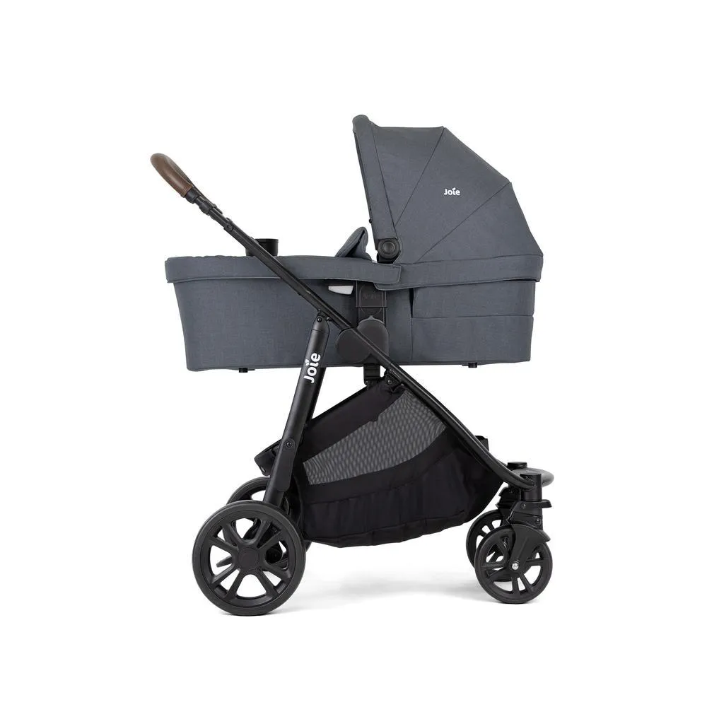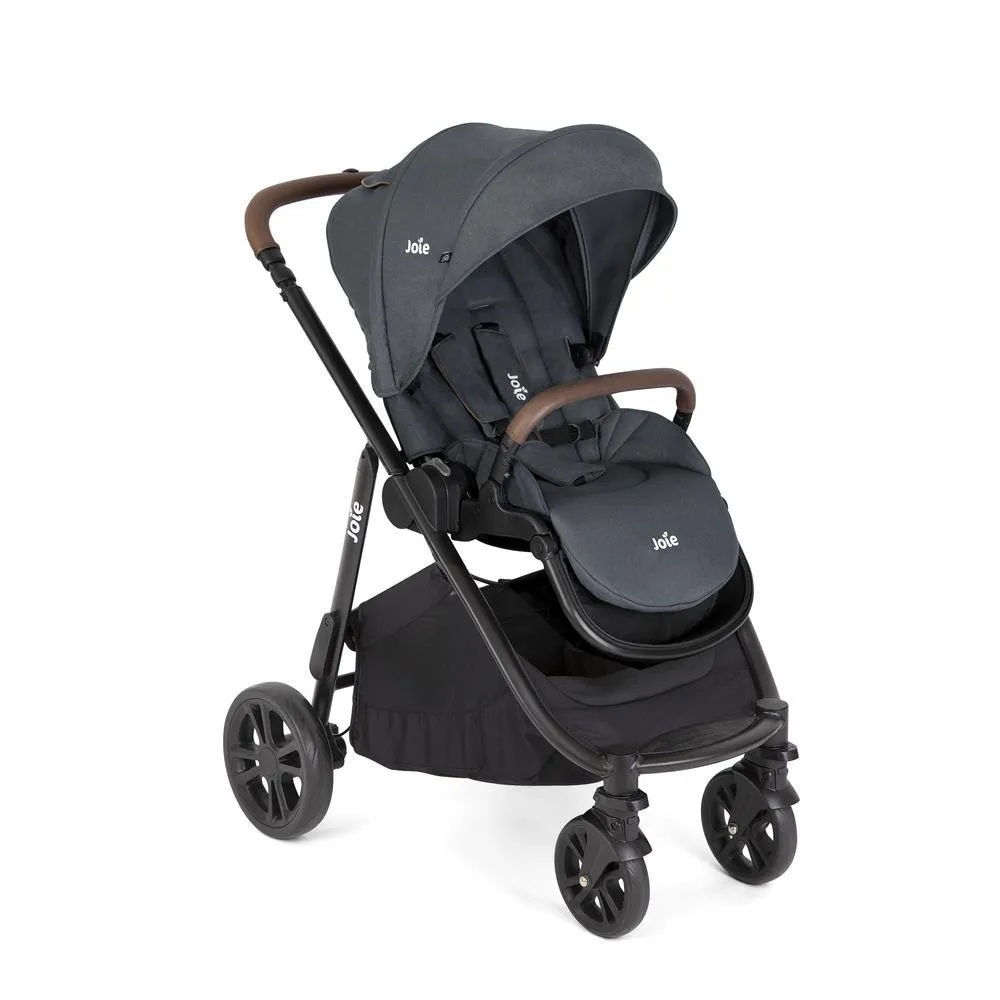 Conheça o Carrinho de Bebê Versatrax E Travel System Trio da Joie, ideal desde o nascimento até 15 kg. Este conjunto inclui um moisés confortável, o bebê conforto e a Base I-snug, suportando até 13 kg. O assento do carrinho é reversível e possui 5 opções de reclino, incluindo posição lie-flat, ideal para recém-nascidos.
