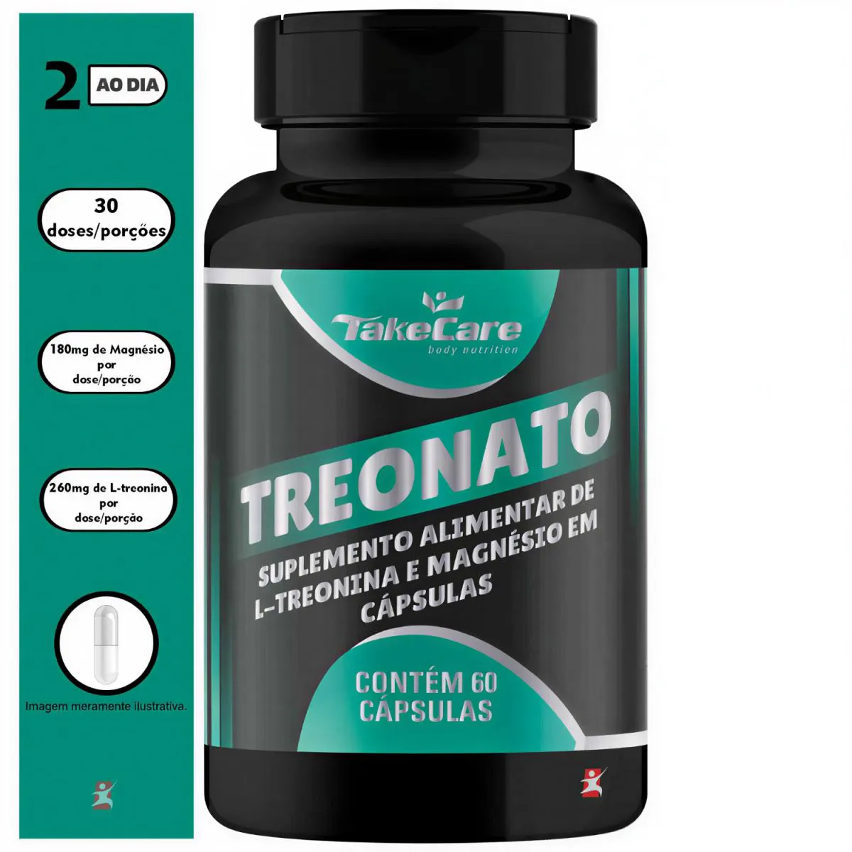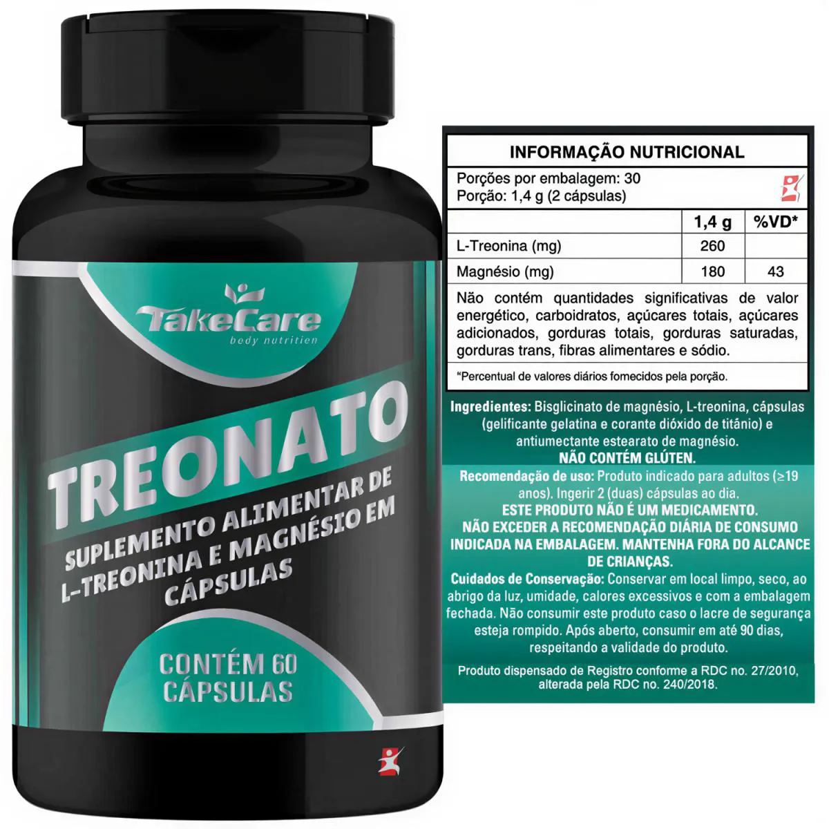 TREONATO DE MAGNÉSIO L-TREONINA 60 CÁPSULAS – TAKE CARE. Total – 60 cápsulas POR FRASCO.