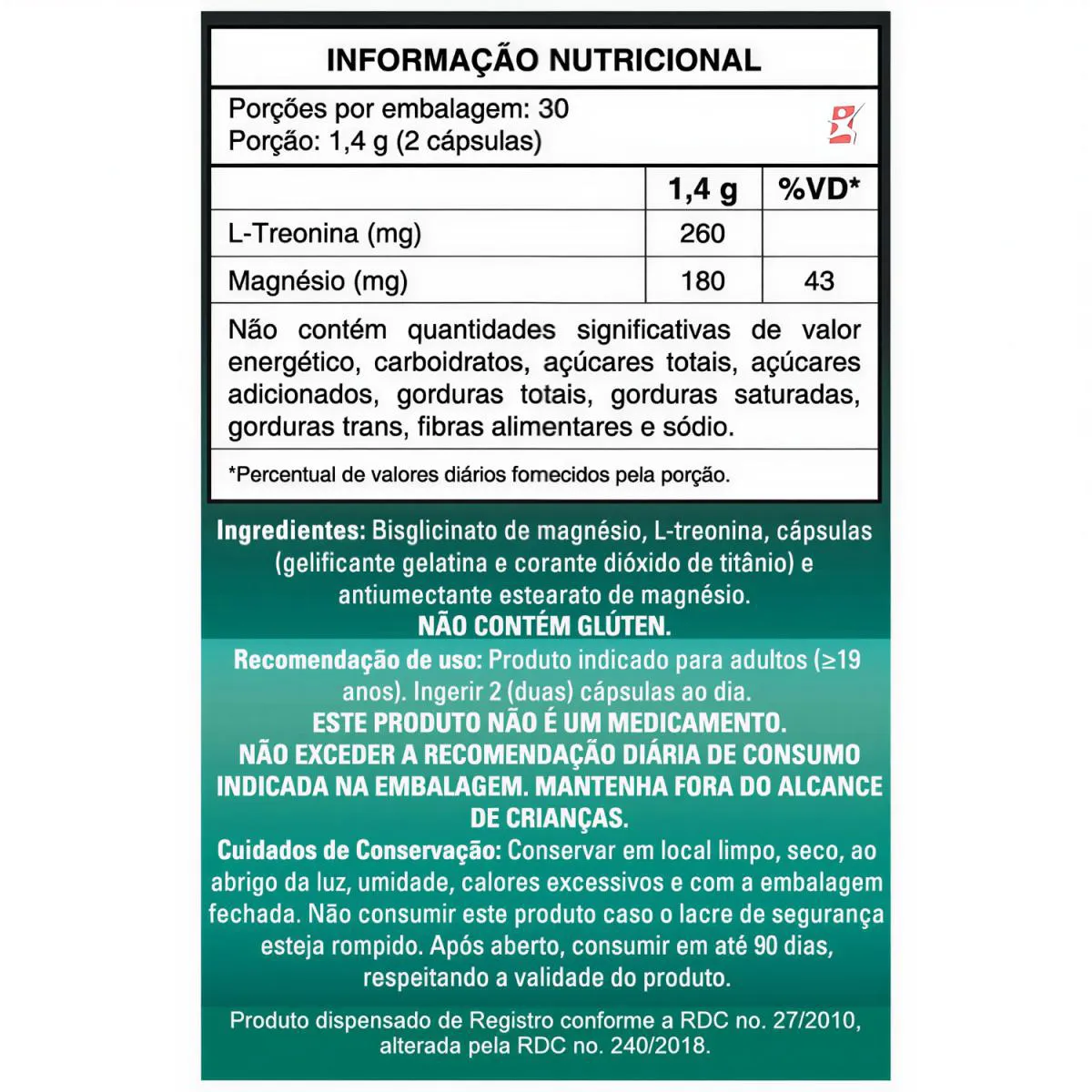 - Pode auxiliar na memória e no foco; - Pode auxiliar na função cognitiva; - Rico em Magnésio; - 260mg de L-Treonina por dose/porção (2 cápsulas); - 180mg de Magnésio por dose/porção (2 cápsulas); - Cada frasco fornece 30 doses/porções – 1 mês; - Concentrado;