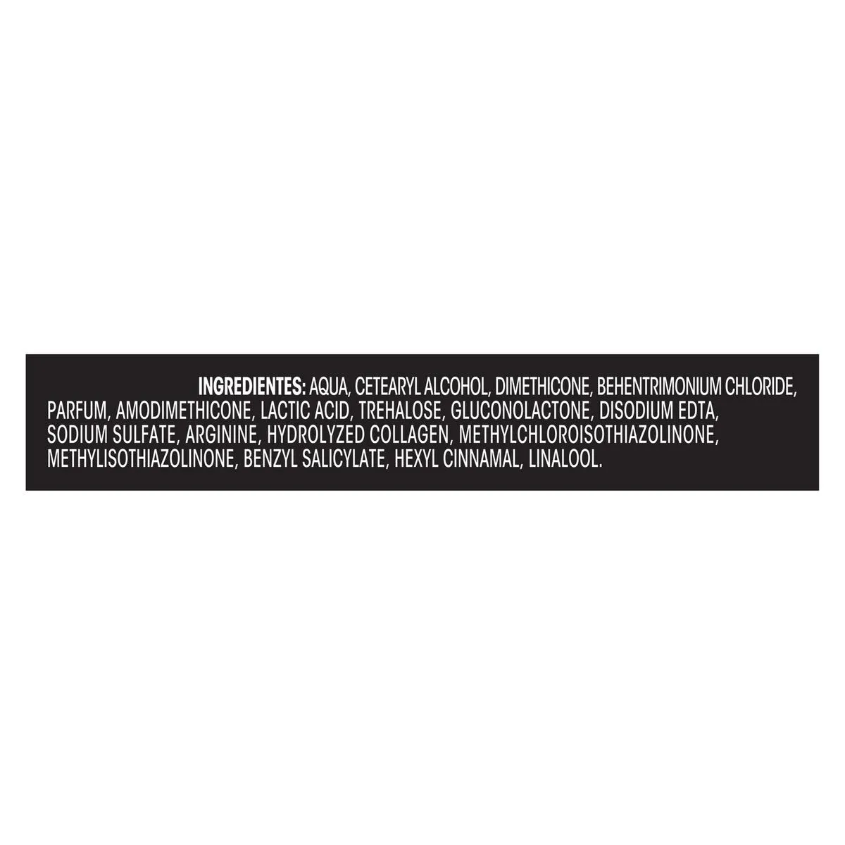 Aqua, Cetearyl Alcohol, Dimethicone, Behentrimonium Chloride, Glycerin, Parfum, Cetyl Palmitate, Amodimethicone, Disodium EDTA, Arginine, Hydrolyzed Collagen, Hydrolyzed Silk, Lysine HCl, Methylchloroisothiazolinone, Methylisothiazolinone, Benzyl Salicylate, Hexyl Cinnamal, Linalool, Lactic Acid.