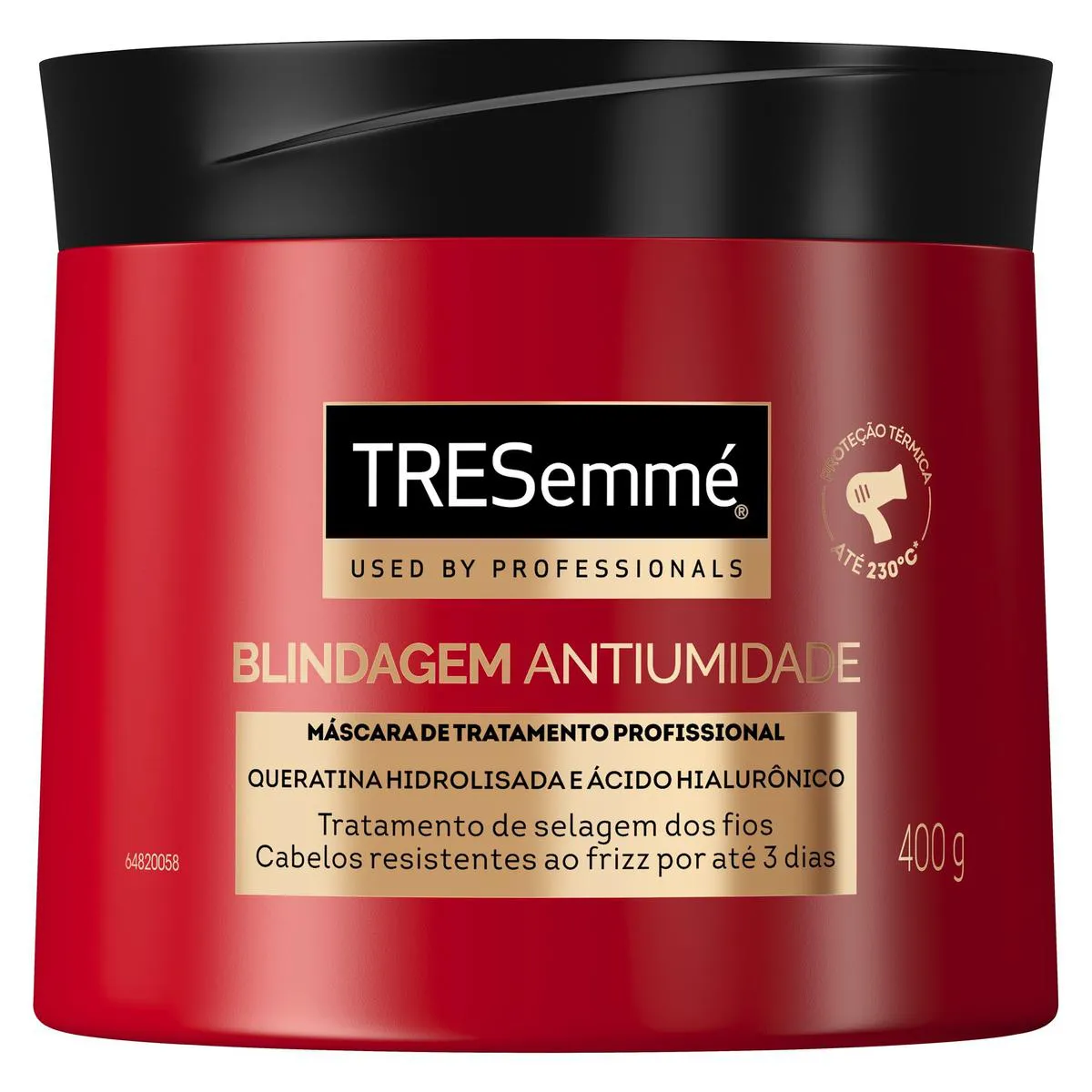 Formulado com com Ácido Hialurônico e Queratina Hidrolisada, o Tresemmé Blindagem Antiumidade é uma máscara de tratamento que fecha as cutículas dos fios, selando sua estrutura e proporcionando fios sedosos e com movimento natural. Ainda, cria uma barreira protetora contra umidade, diminuindo instantaneamente o aspecto ressecado do cabelo, volume e frizz.