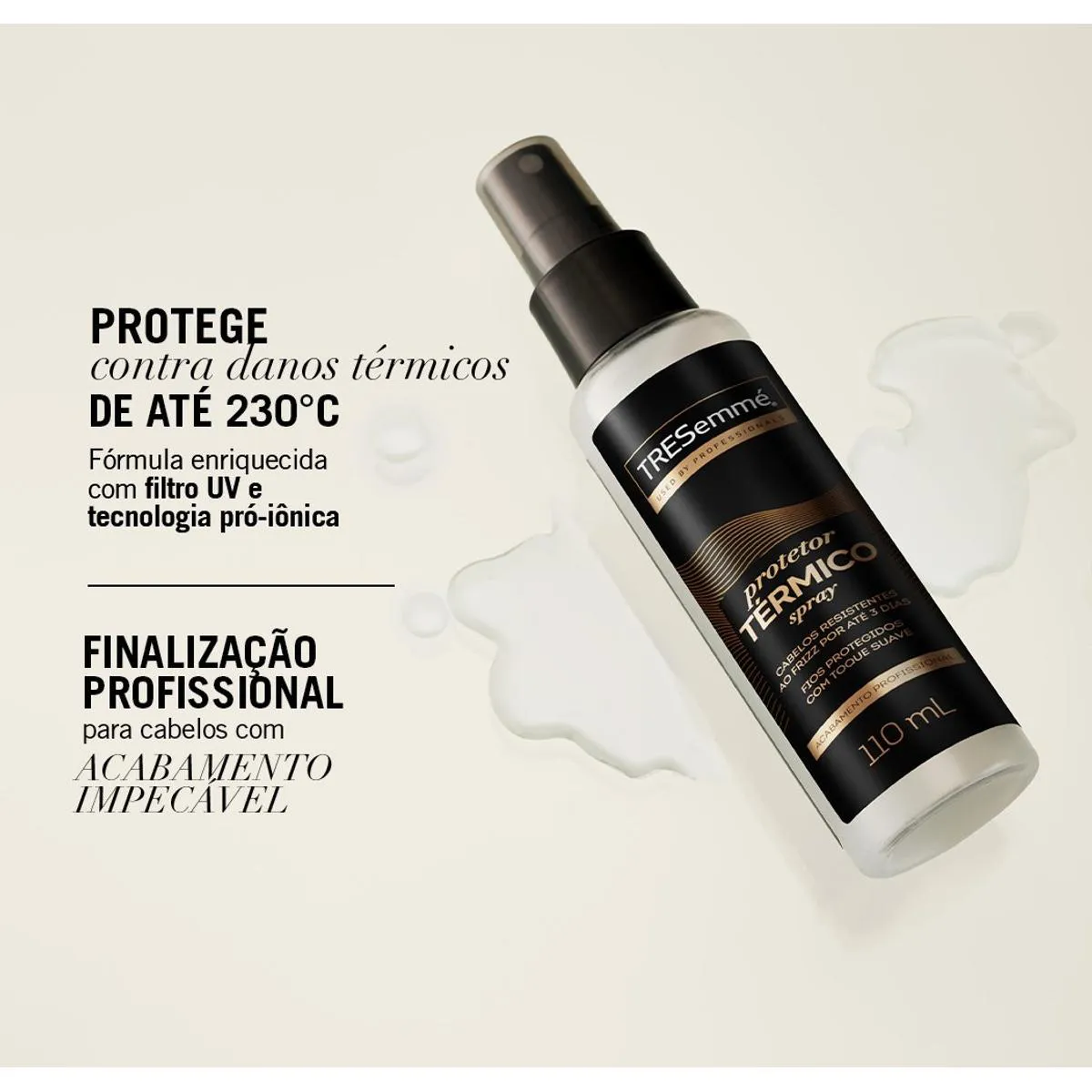O protetor térmico antifrizz Tresemmé é um produto profissionalmente desenvolvido com filtro UV e tecnologia Pró-Iônica, protegendo os fios sem pesar.