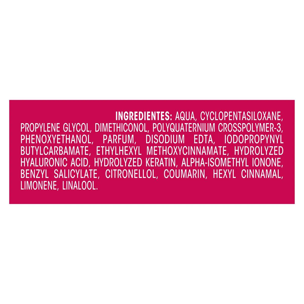 - Conta com Ácido Hialurônico e Queratina Hidrolisada.