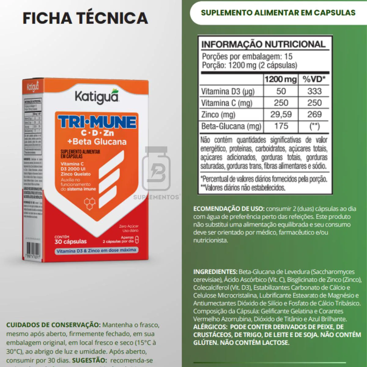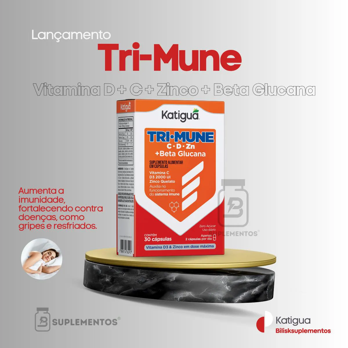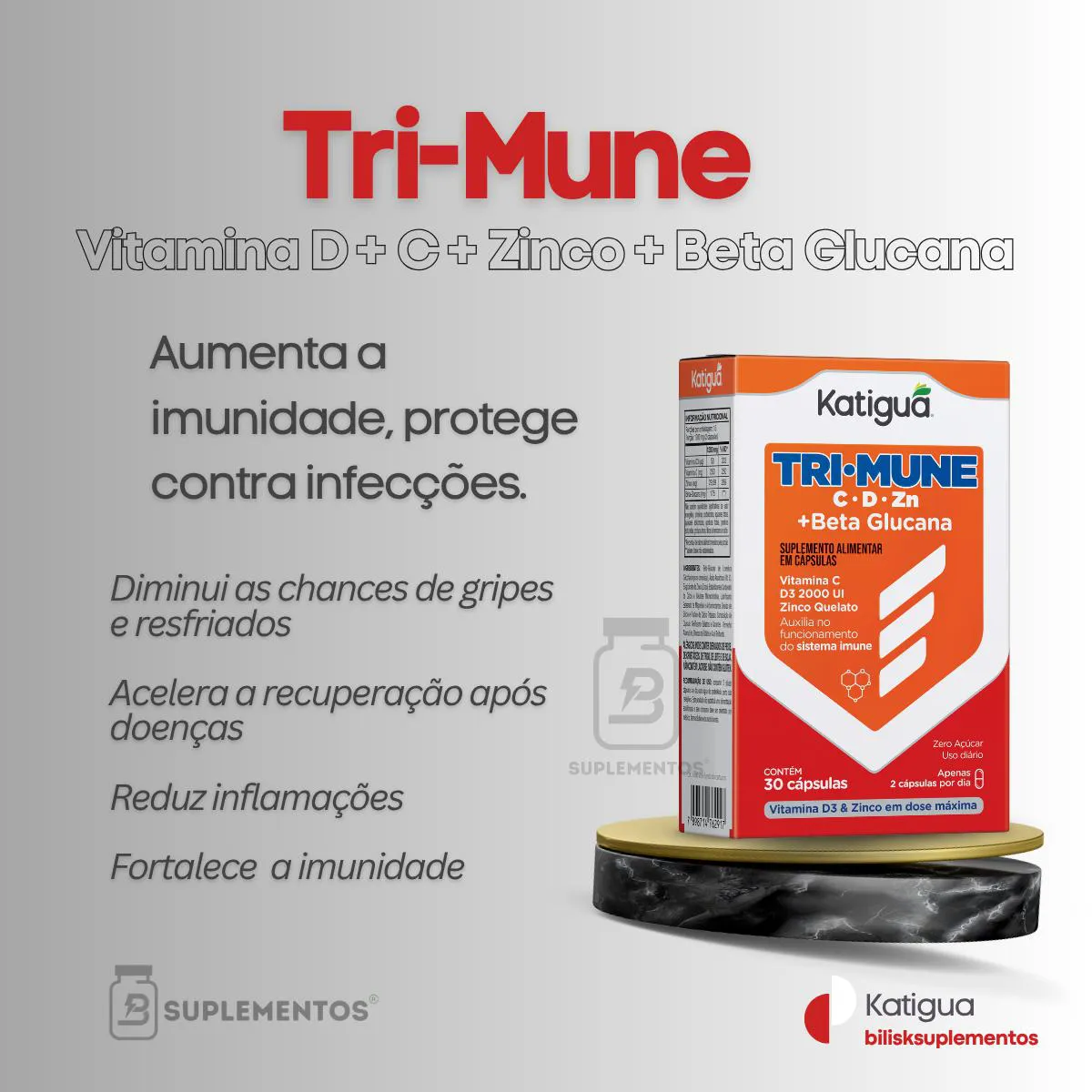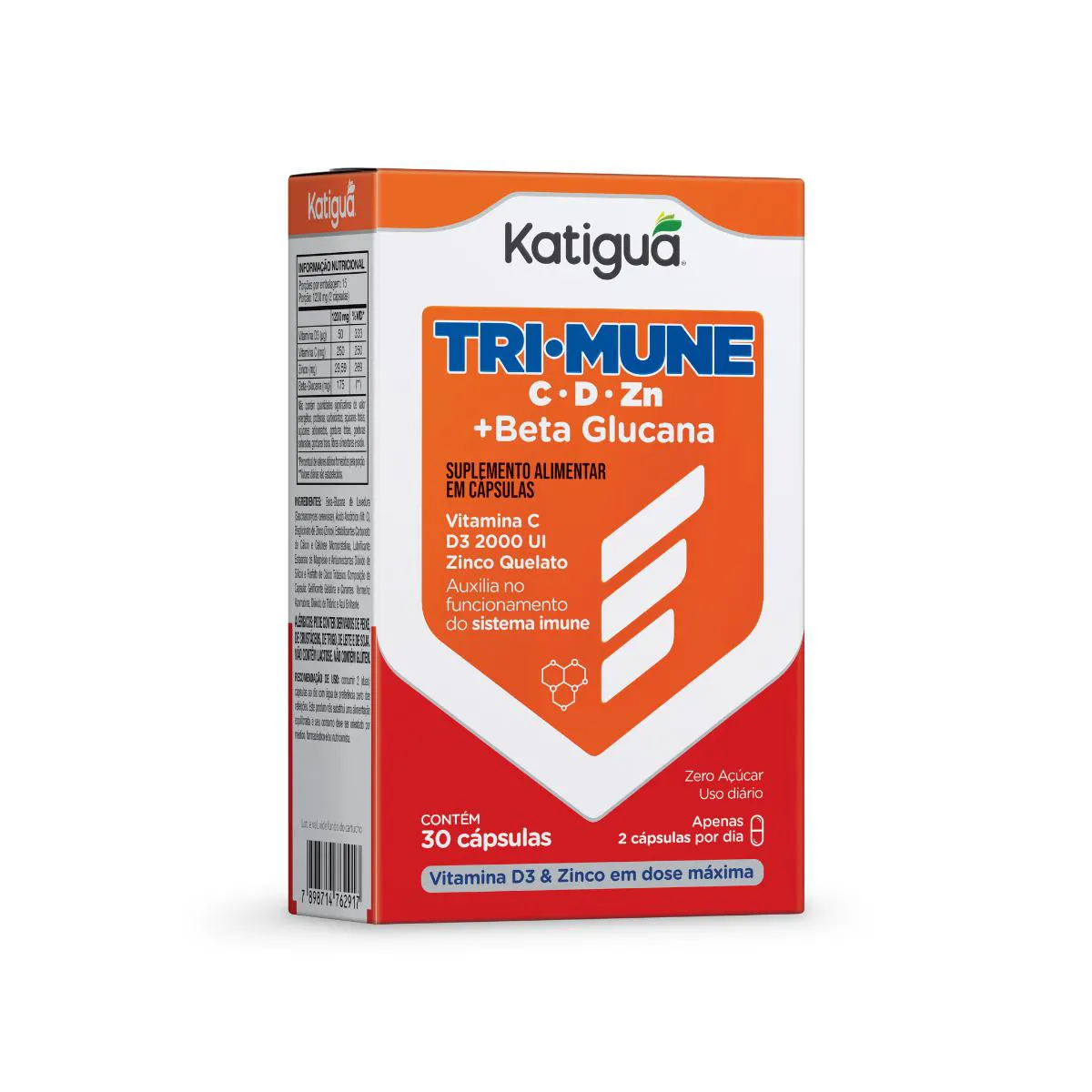 Trimune + Vitamina C + D3 + Zinco + Betaglucana 30Caps Katigua