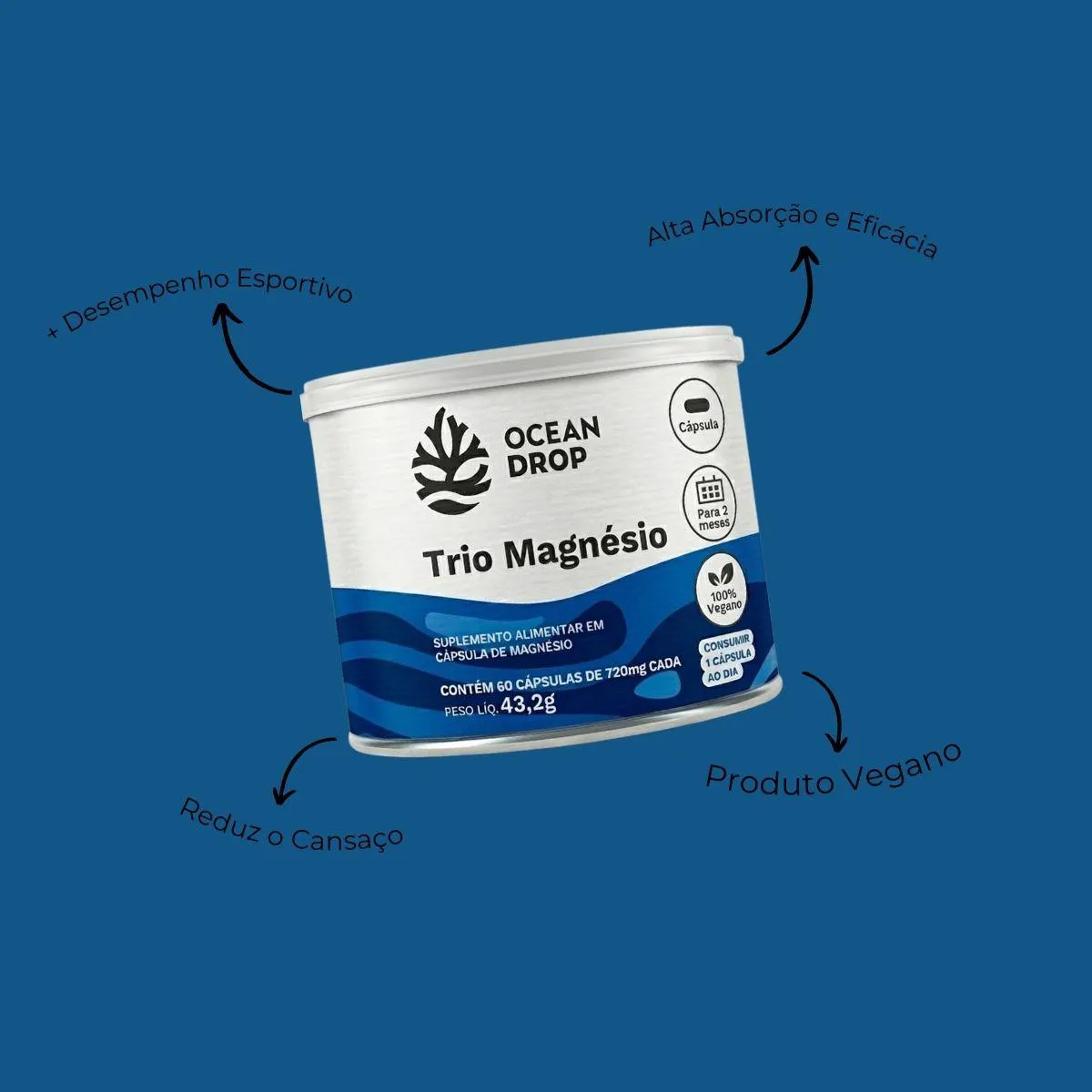Trio Magnesio 43G Energetico Desempenho Esportivo 60 Capsulas Ocean Drop