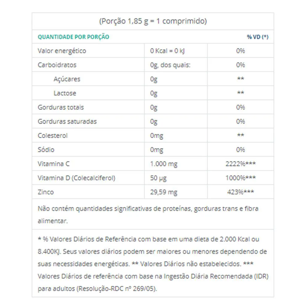 O Triplo Imuno é um suplemento nutricional desenvolvido para indivíduos com 19 anos ou mais, composto por 3 nutrientes essenciais: vitamina C (1.000 mg), vitamina d (2.000 UI) e Zinco (29,59 mg). É um suplemento multifuncional que não contém glúten, açúcares e lactose.
