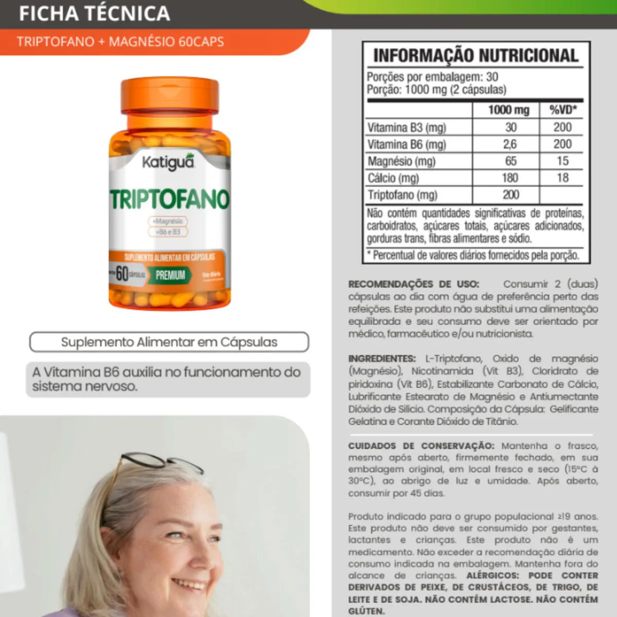 Suplemento alimentar formulado com L-triptofano e magnésio, nutrientes que participam de importantes processos metabólicos no organismo.Benefícios: