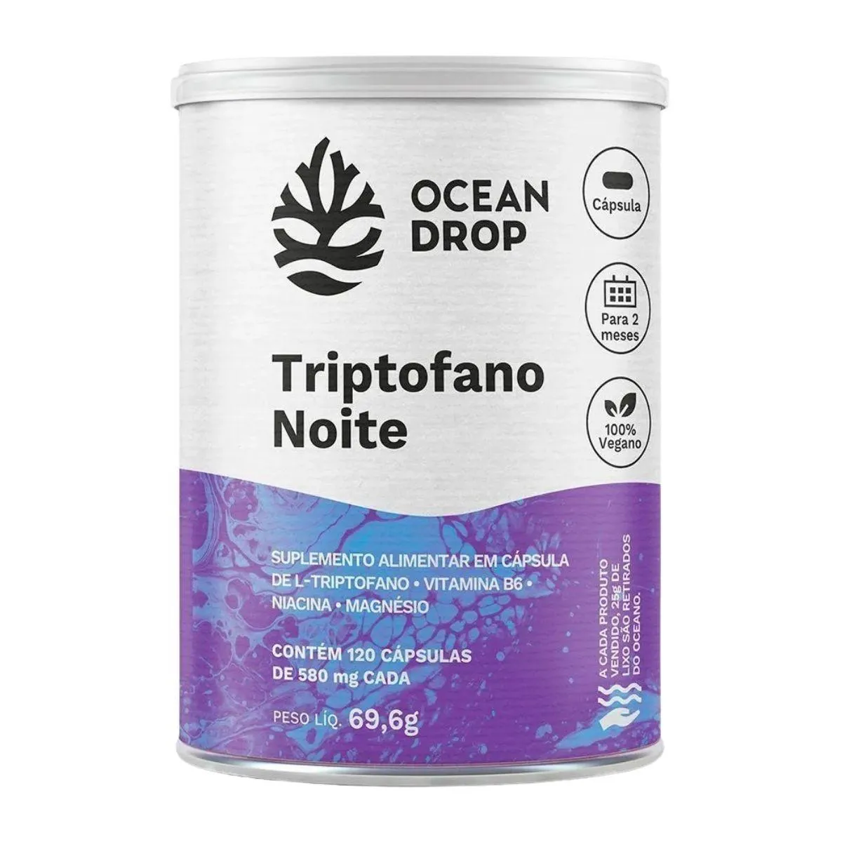 Triptofano Noite 69G Mais Serotonina e Bem-Estar 120 Capsulas Ocean Drop