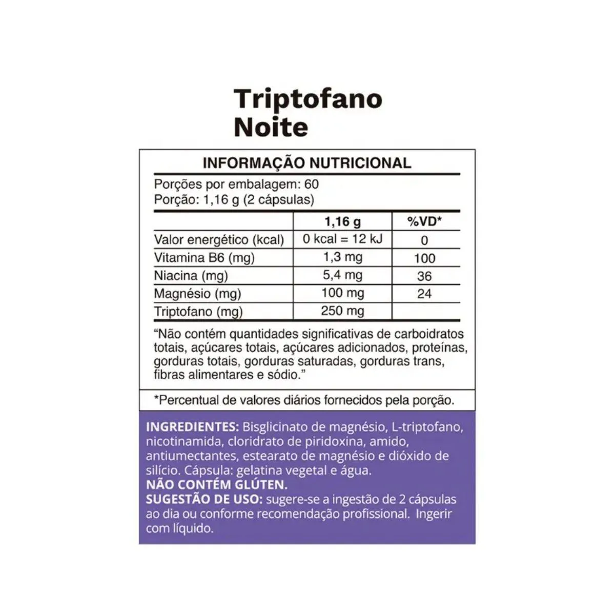 triptofano NOITE 120 CÁPSULAS PARA QUALIDADE DO sono E BEM-ESTAR O blend especial de aminoácidos e nutrientes que você precisa para otimizar suas noites de descanso. Desenvolvido por uma marca reconhecida pela qualidade, o Triptofano Noite é a escolha ideal para quem ama cuidar do corpo e da mente, garantindo suporte essencial para o sistema nervoso. Sinta a diferença de uma noite bem dormida. Diferenciais do Produto