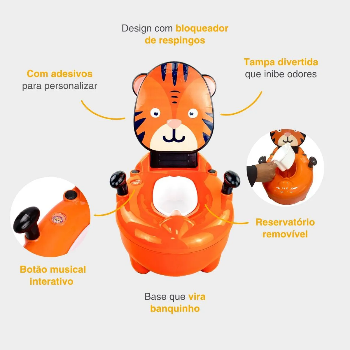 O que é e para que serve o Troninho Penico infantil Musical Desfralde Que Vira Banquinho Tigre Replay Kids?