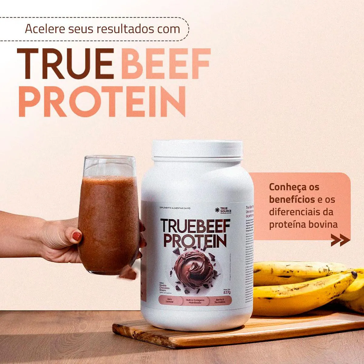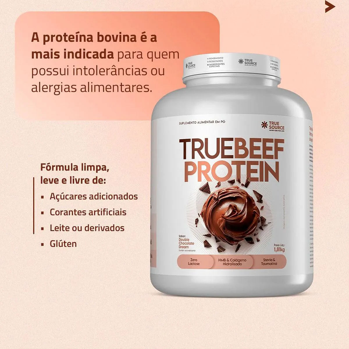 Proteína bovina incrivelmente deliciosa! Cada dose de True Beef Protein oferece 23g de proteína de alta qualidade e alto valor biológico. A proteína bovina é conhecida por seu perfil completo de aminoácidos. True Beef Protein é enriquecido com 1g de HMB (Beta-hidroxi-beta-metilbutirato) por dose. O HMB é um metabólito do aminoácido leucina. Nossa fórmula também combina proteína bovina com colágeno hidrolisado. Além de ser uma proteína hipoalergênica, assim como a bovina, o colágeno hidrolisado é facilmente absorvido pelo corpo, apoiando a estrutura e a elasticidade dos tecidos. Nosso suplemento é totalmente livre de glúten, açúcar e lactose, tornando-o perfeito para quem possui intolerâncias alimentares ou segue uma dieta diferenciada. Você pode desfrutar de True Beef Protein com a certeza de que está consumindo um suplemento puro, funcional e saudável. 23g Proteína