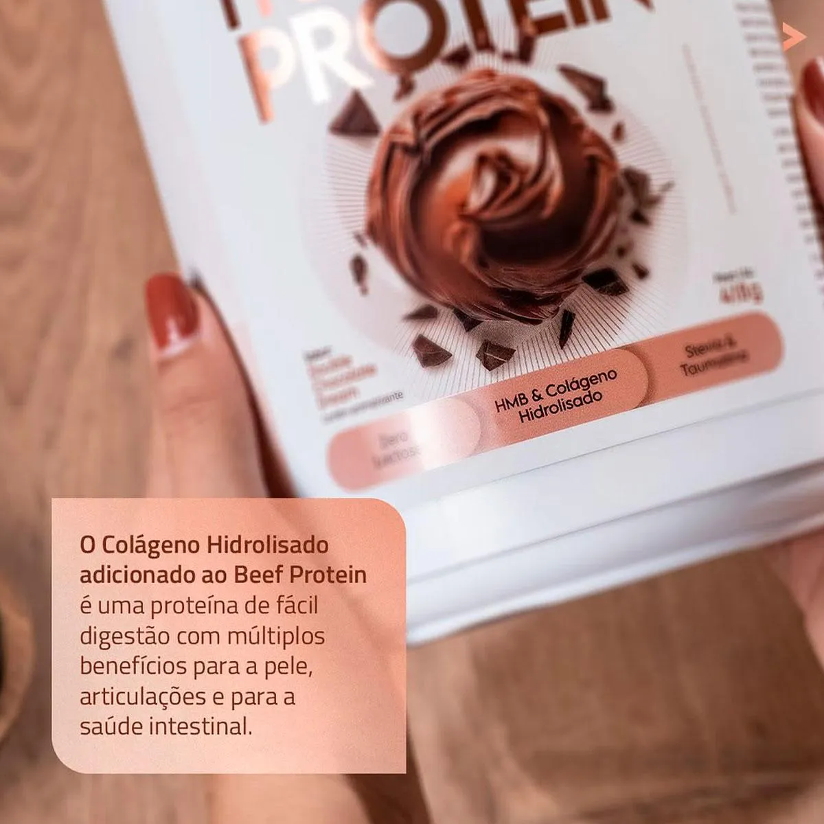 Proteína bovina incrivelmente deliciosa! Cada dose de True Beef Protein oferece 23g de proteína de alta qualidade e alto valor biológico. A proteína bovina é conhecida por seu perfil completo de aminoácidos. True Beef Protein é enriquecido com 1g de HMB (Beta-hidroxi-beta-metilbutirato) por dose. O HMB é um metabólito do aminoácido leucina. Nossa fórmula também combina proteína bovina com colágeno hidrolisado. Além de ser uma proteína hipoalergênica, assim como a bovina, o colágeno hidrolisado é facilmente absorvido pelo corpo, apoiando a estrutura e a elasticidade dos tecidos. Nosso suplemento é totalmente livre de glúten, açúcar e lactose, tornando-o perfeito para quem possui intolerâncias alimentares ou segue uma dieta diferenciada. Você pode desfrutar de True Beef Protein com a certeza de que está consumindo um suplemento puro, funcional e saudável. 23g Proteína