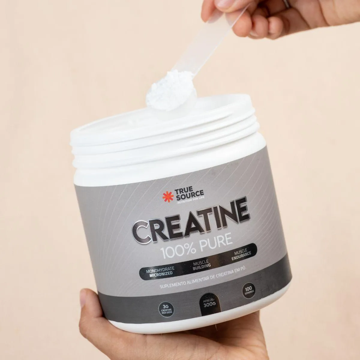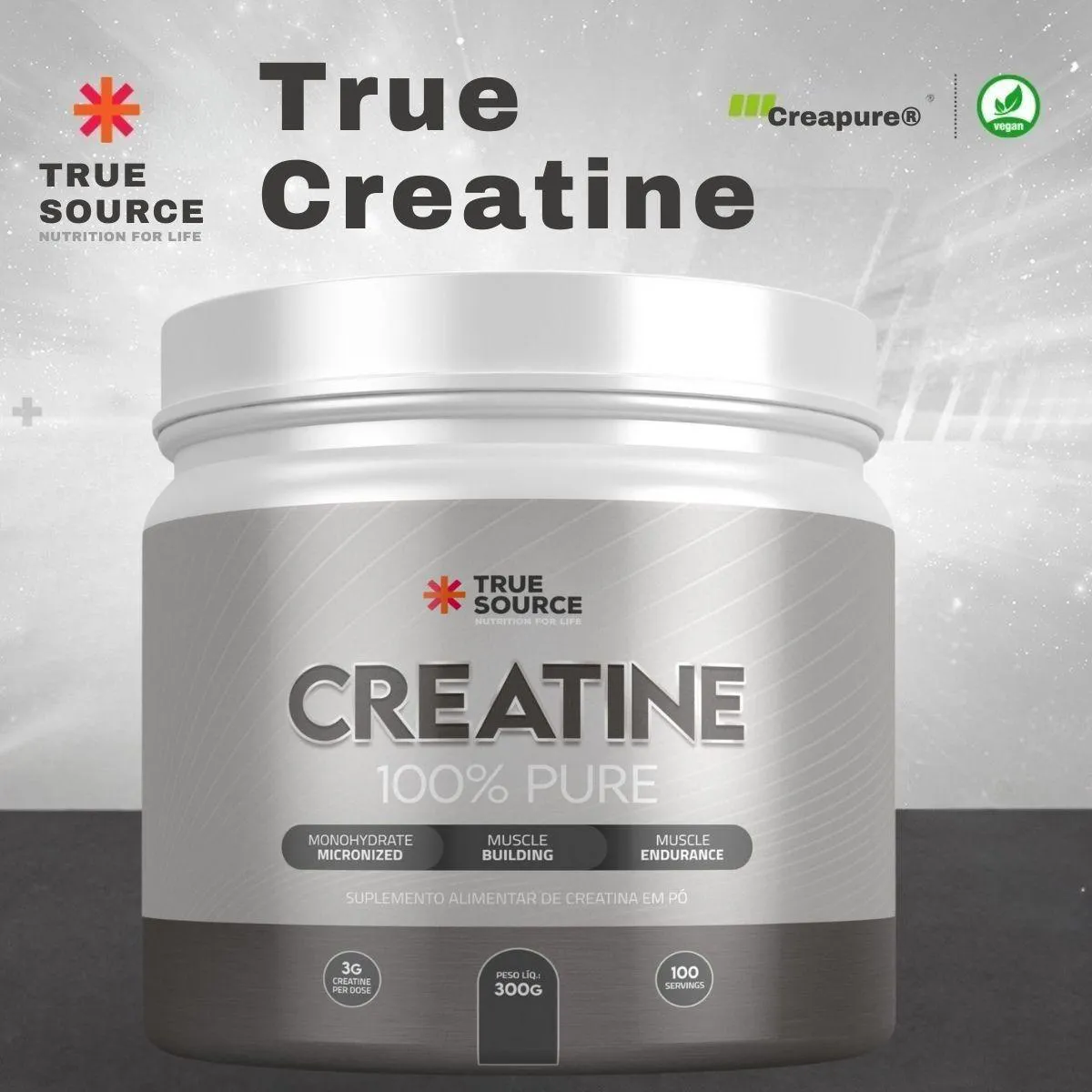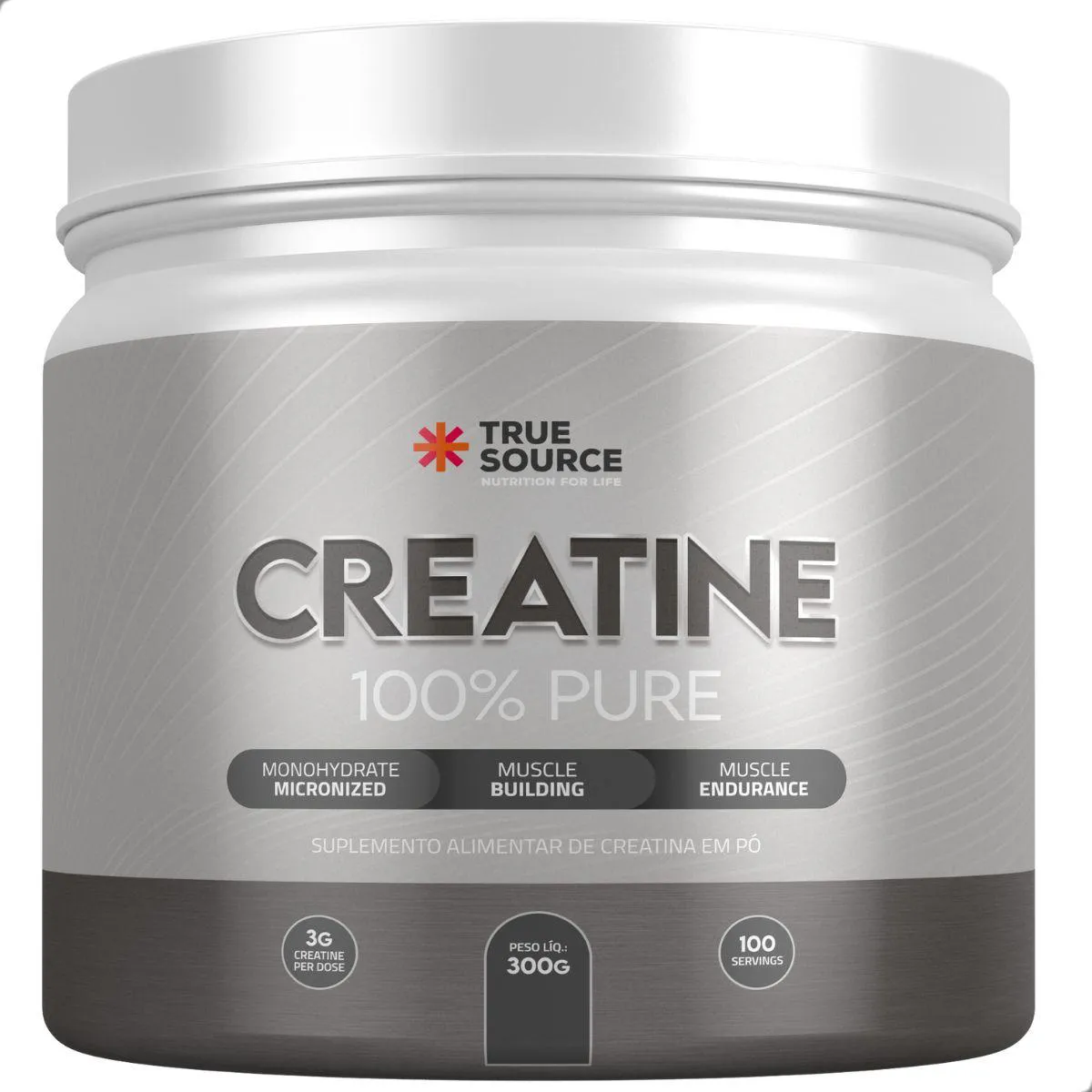 A True Creatine 100% Pure 300g True Source foi desenvolvida para quem busca um suplemento de creatina monohidratada com foco em pureza, solubilidade e facilidade de uso. O produto apresenta creatina em pó com granulometria fina, um formato que favorece mistura, dosagem precisa e uso simples no dia a dia. A proposta da True Source é entregar um suplemento claro, objetivo e alinhado à necessidade de quem prefere fórmulas diretas, sem combinações artificiais ou ingredientes adicionais.