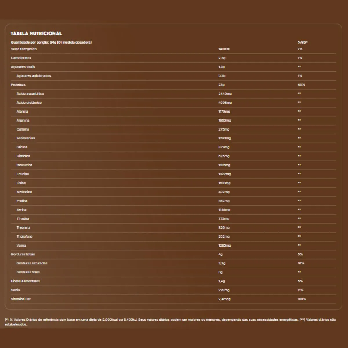 Nossa proteína vegana lhe proporciona um blend de proteínas vegetais como a do arroz integral, da ervilha, além da chia e da castanha de caju. Com um sabor incrível e cremosidade única, nosso True Vegan irá potencializar seus resultados. Em nosso produto oferecemos um aminograma muito similar ao do whey protein, pois contém ótimas quantidades de BCAAs. Os BCAAs são os aminoácidos de cadeia ramificada, muito importantes para a manutenção da massa magra, evitando o catabolismo e a fadiga muscular, porque sabemos que ninguém merece ficar com aquela sensação de cansaço excessivo após um treino mais intenso. A digestibilidade da nossa proteína vegetal é mais fácil e causa menos efeitos indesejáveis, como estufamento e gases. Ingredientes: True Vegan Blend (proteína isolada de ervilha e proteína isolada de arroz), leite de coco em pó, TCM em pó (triglicerídeos de cadeia média), amêndoas de castanha de caju em grãos, coco ralado fino, metilcobalamina (vitamina B12), aromatizantes naturais, espessantes goma xantana e goma guar e edulcorantes (glicosídeos de steviol e taumatina). NÃO CONTÉM GLÚTEN. ALÉRGICOS: CONTÉM CASTANHA DE CAJU. PODE CONTER SOJA, AMENDOIM. Como usar: Diluir em mixer, coqueteleira ou liquidificador 01 medida dosadora (34g) em 250ml de água.
