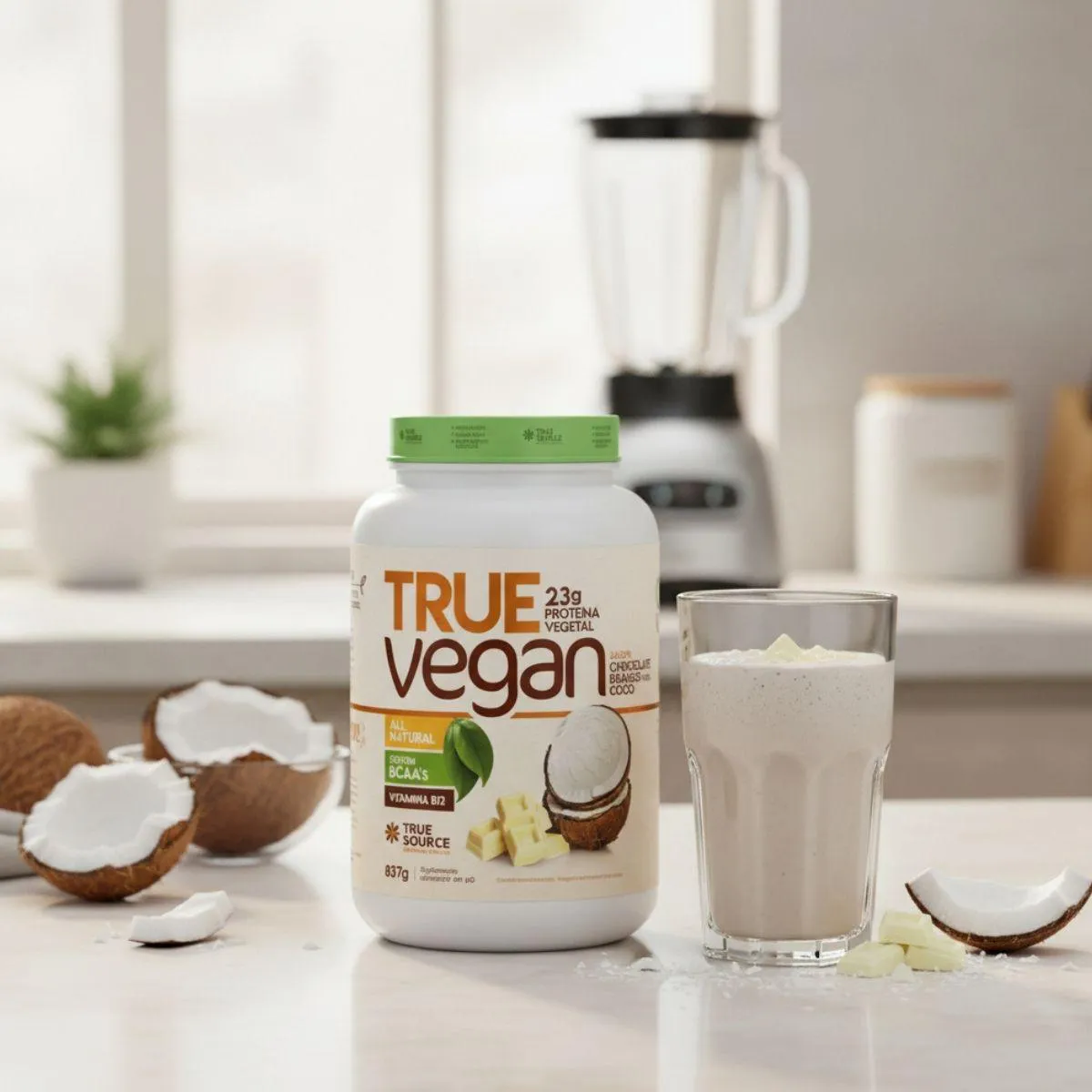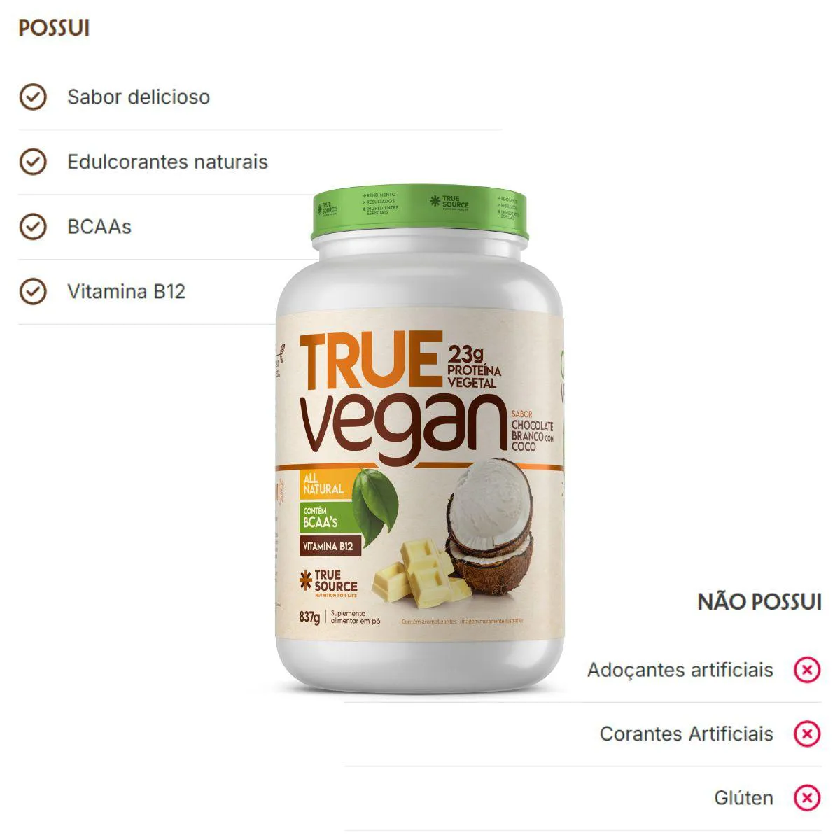 True Vegan Proteina Vegetal 837G Vegana True Source Chocolate Branco COM Coco