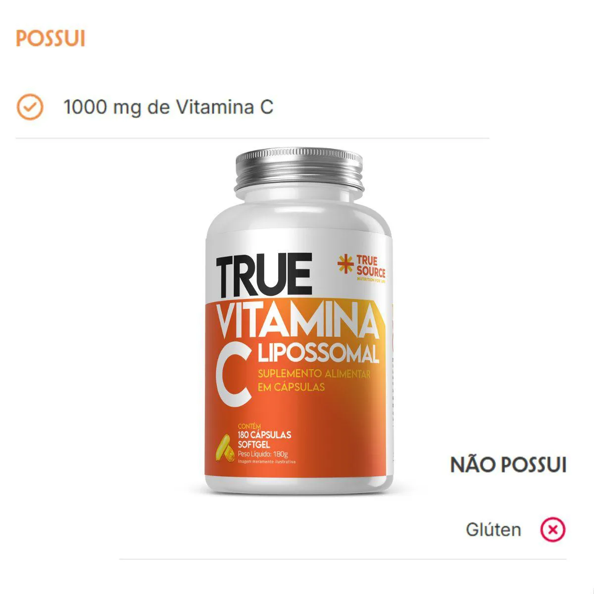 True Vitamina C Lipossomal 180 Cápsulas Softgel True Source Natural