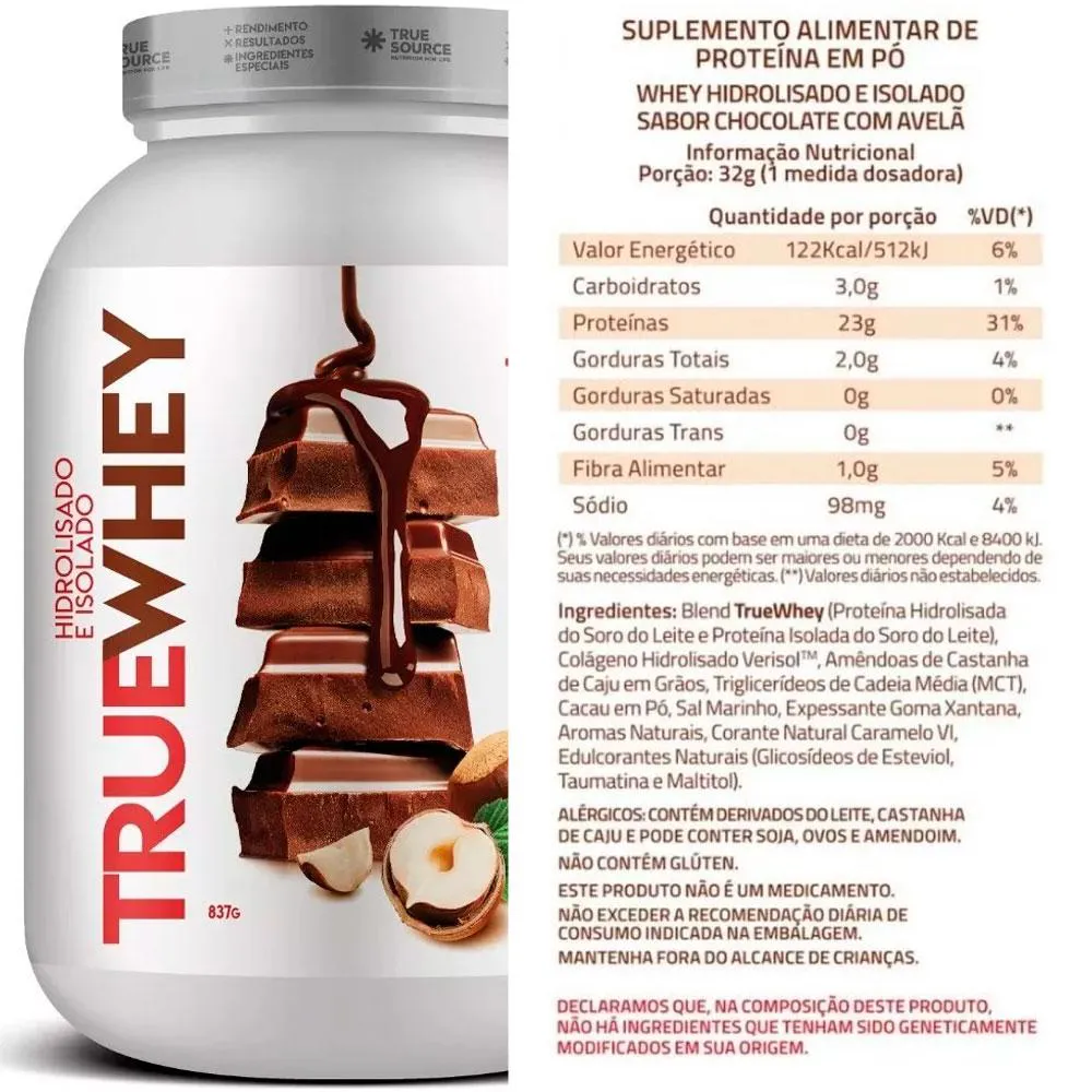 True Whey Hidrolisado e Isolado Chocolate com Avelã (837G) True Source