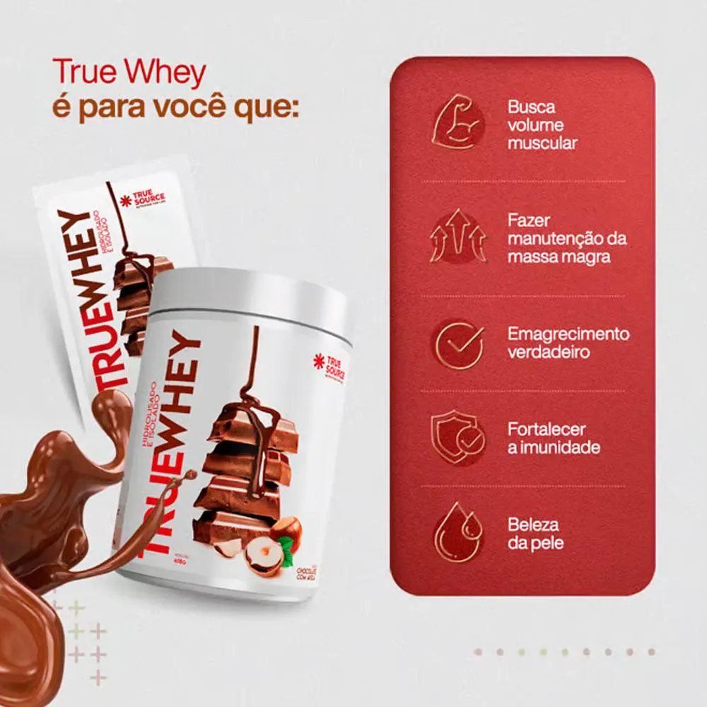 O True Whey pode ser utilizado para quem busca o emagrecimento verdadeiro, já que é rico em proteínas e possui gorduras do bem, que lhe deixará durante mais tempo com aquela sensação de conforto e saciedade.