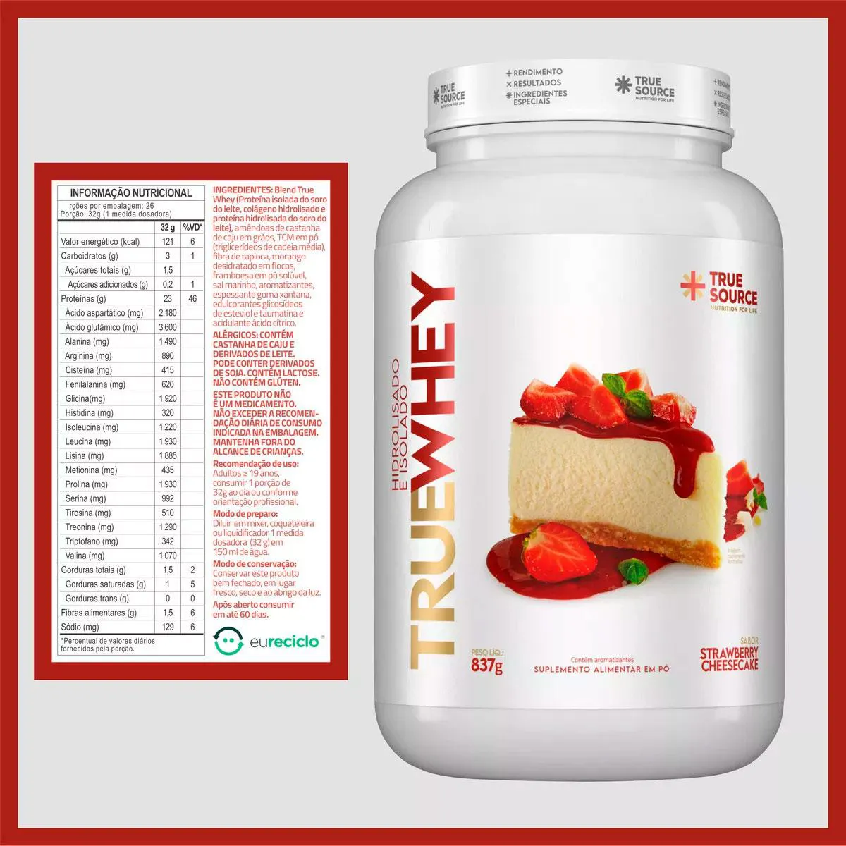 True Whey Hidrolisado e Isolado Strawberry Cheesecake (837G) True Source