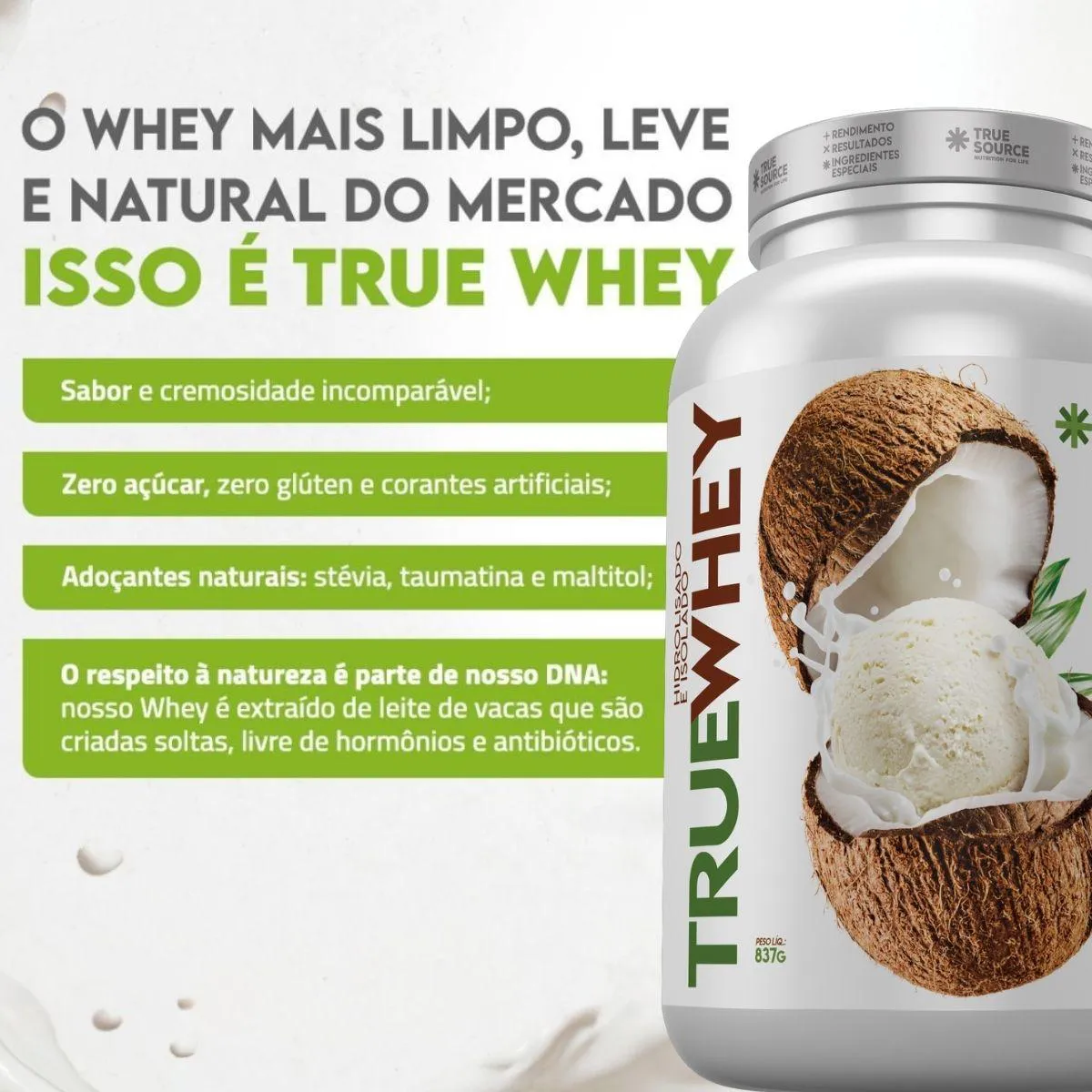 O que é e para que serve o True whey protein Hidrolisado E Isolado 837G - True Source Coco?
