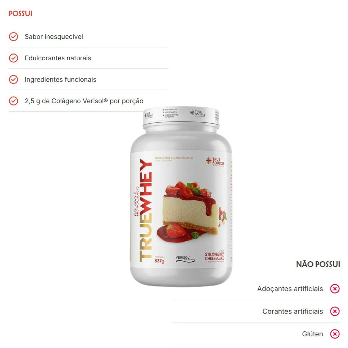 True Whey Protein Hidrolisado e Isolado 837G - True Source Morango
