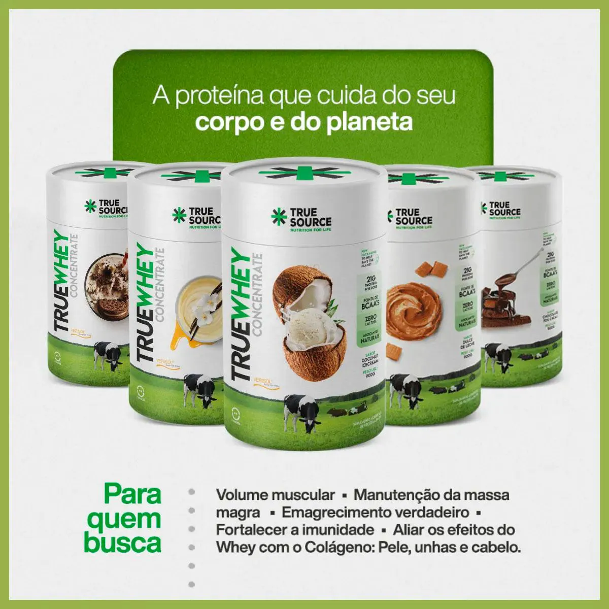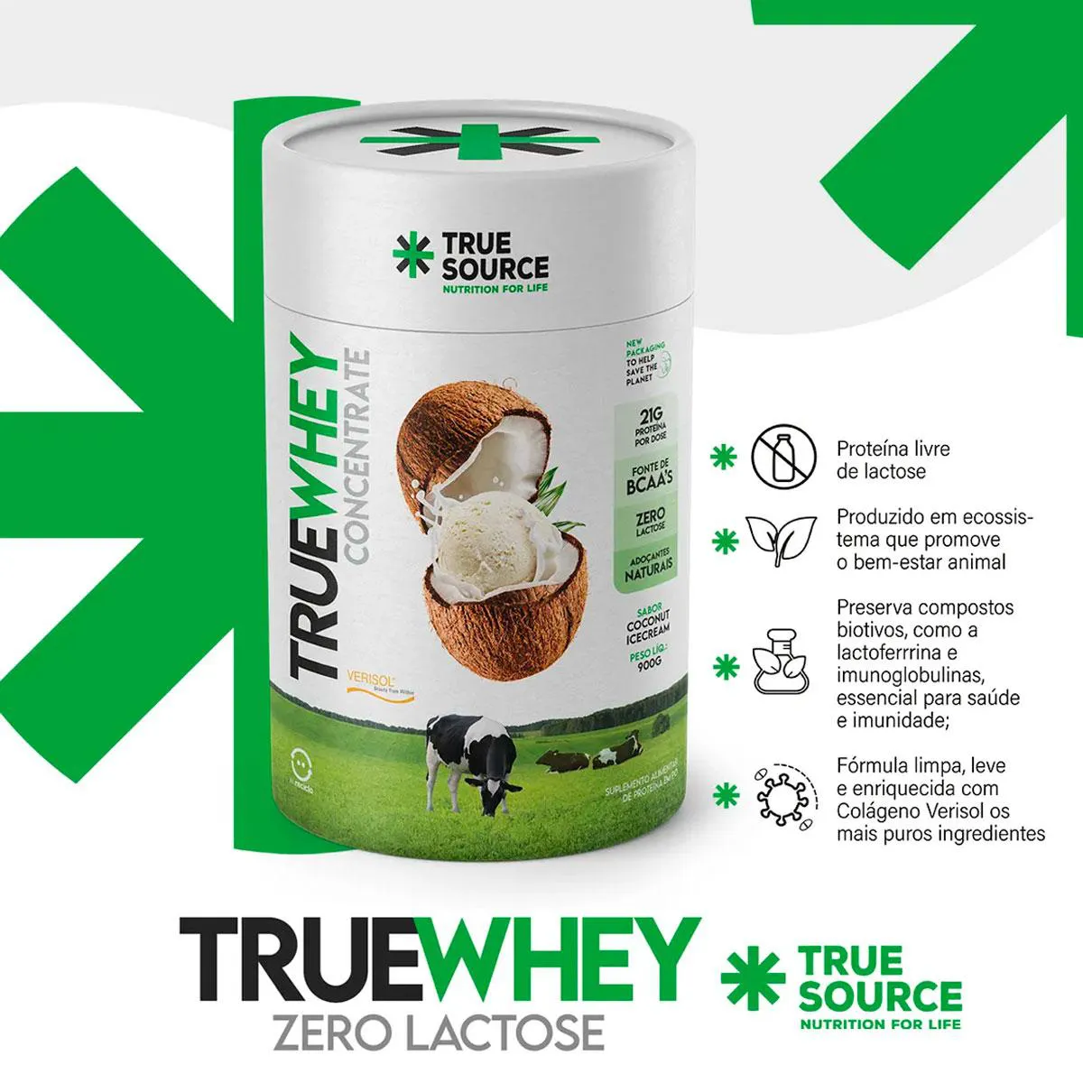 WHEY NATURAL, SABOROSO E ZERO LACTOSE! A mais pura e nutritiva das proteínas, agora na versão livre de lactose, assim podemos definir o TRUE WHEY ZERO LACTOSE. Uma proteína limpa, leve, com colágeno Verisol e os mais puros ingredientes, pois a True é assim: pura, natural e limpa. O TRUE WHEY ZERO LACTOSE garante que o nosso leite é extraído de vacas soltas e que se alimentam apenas de pastos naturais desde o nascimento até a ordenha do leite, livres de rações transgênicas e com qualquer tipo de hormônios e antibióticos. Além disso, você estará consumindo uma proteína que preserva compostos bioativos como a lactoferrina e imunoglobulinas essenciais para saúde e imunidade. Possui: Edulcorantes naturais Colágeno Verisol Ingredientes funcionais Corantes Naturais Não possui: adoçantes artificiais Aromatizantes artificiais Glúten Lactose COMO USAR: Adultos 19 anos, dissolver 01 (um medidor) em 200ml de água no pré e/ou pós treino, podendo ser utilizado também em qualquer outro horário do dia ou conforme prescrição de seu médico ou nutricionista. Advertências: "ESTE PRODUTO NÃO É UM MEDICAMENTO" "ESTE PRODUTO É UM SUPLEMENTO ALIMENTAR" "MANTENHA FORA DO ALCANCE DE CRIANÇAS" "NÃO EXCEDER A RECOMENDAÇÃO DIÁRIA DE CONSUMO INDICADA NA EMBALAGEM" Registro no M.S. nº Produto dispensado de registro RDC 240 de 2018