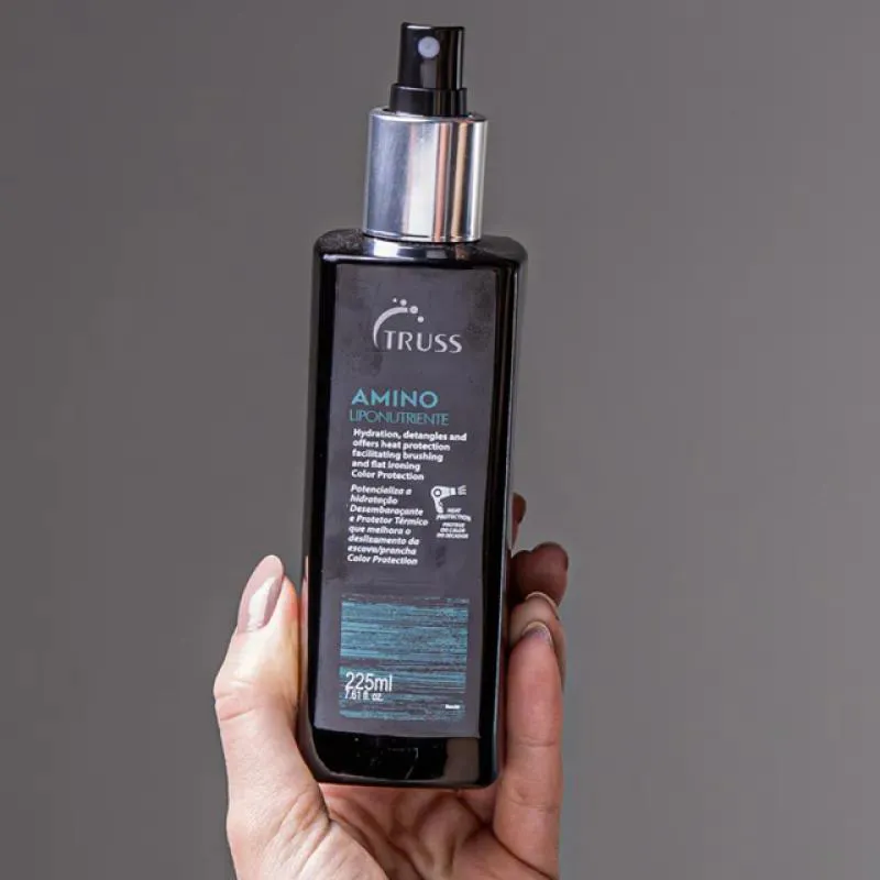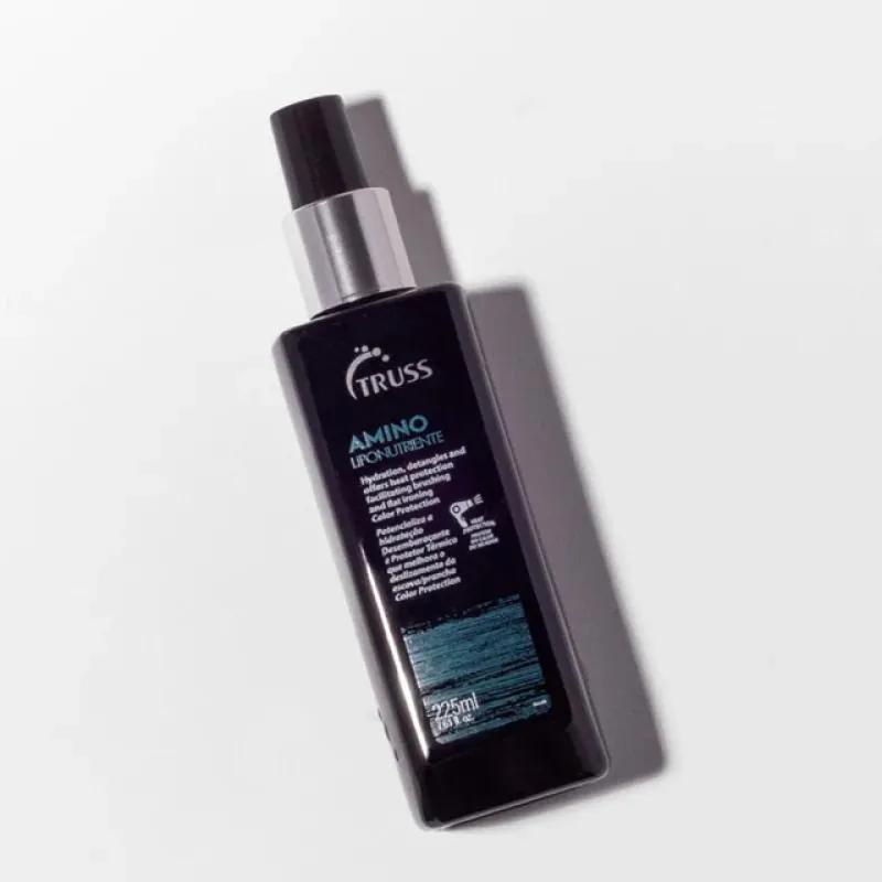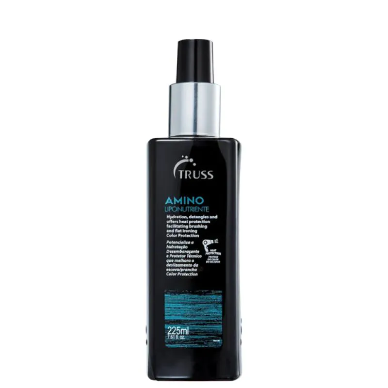 Protetor térmico para todos os tipos de cabelo. TRUSS Alexandre Herchcovitch Amino diminui o tempo de secagem dos fios e evita os danos causados pelo calor do secador e da prancha. O Protetor Térmico TRUSS Alexandre Herchcovitch Amino sela os fios, o que proporciona maciez, controle, brilho e facilidade ao pentear e ao deslizar os acessórios térmicos. Sua embalagem conta com estampas exclusivas criadas pelo estilista Alexandre Herchcovitch. Com Protetor Térmico TRUSS Amino você conquista cabelos intensamente protegidos, desembaraçados, sedosos e livres do frizz por mais tempo.
