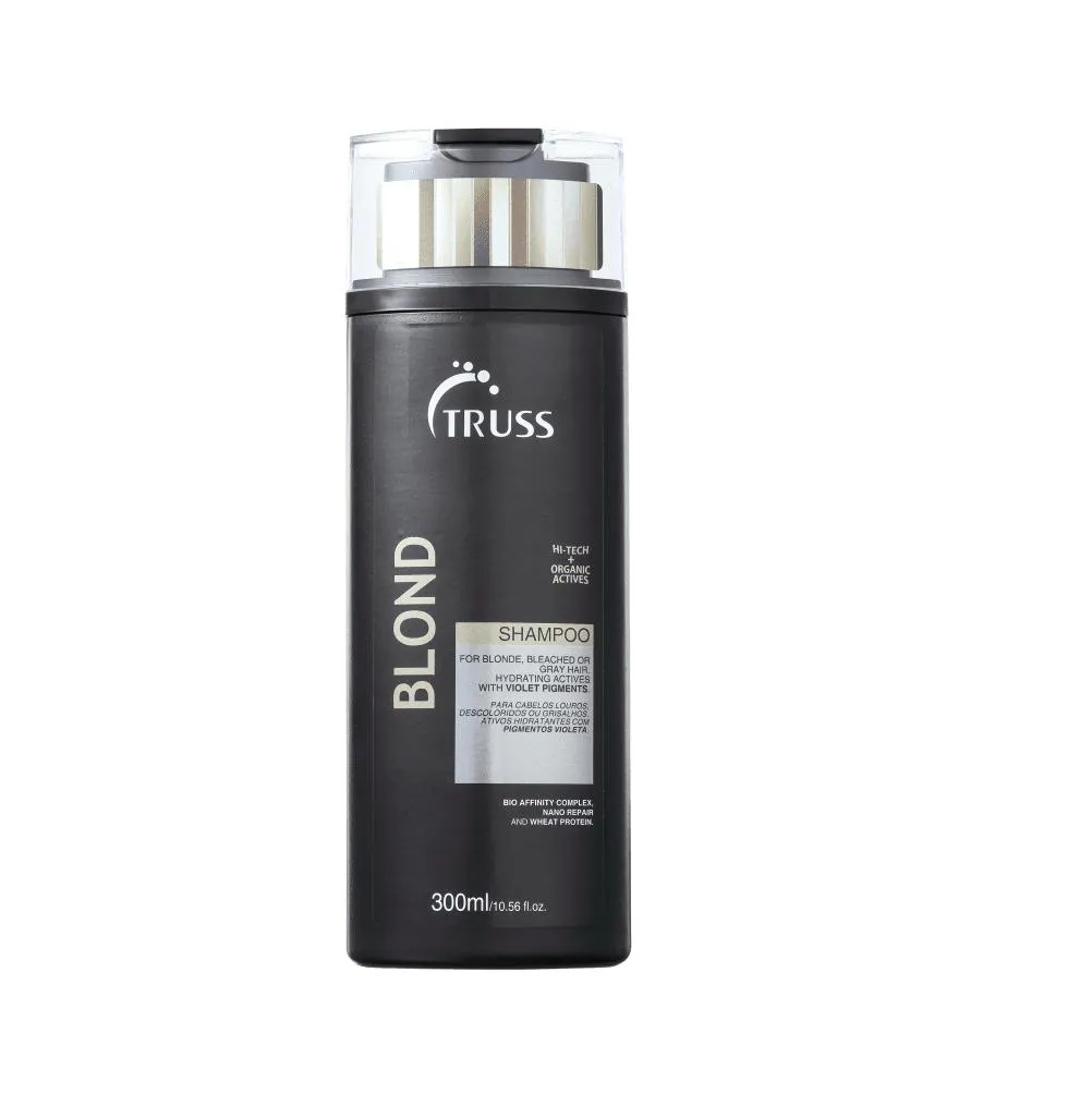 Truss Blond - Shampoo 300ml: recupera a força e a resistência dos fios claros enquanto neutraliza o amarelado.