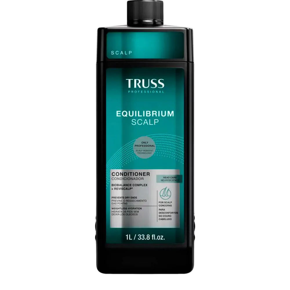 O Truss condicionador Equilibrium Scalp RPK 1000ml é um condicionador profissional formulado para cabelos mistos, com couro cabeludo oleoso e pontas secas. Ideal para quem busca equilíbrio e cuidado capilar de alta performance, este condicionador utiliza a Tecnologia Scalp Reboost, combinada com ativos como Bio Balance Complex e Reviscalp, para hidratar os fios sem pesar, controlar a oleosidade e aliviar desconfortos como coceira e descamação. Sua fragrância fresca de Neroli, Bergamota e Flor de Laranjeira transforma a rotina de cuidados em uma experiência relaxante e revigorante, promovendo cabelos macios, brilhantes e saudáveis.
