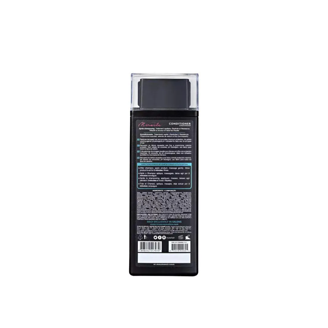 O Condicionador Truss Miracle também ajuda a recuperar a elasticidade e resistência. Além disso, a fórmula combate o frizz e mantém os fios sedosos e suaves por muito tempo. O cabelo fica desembaraçado, reparado e com brilho radiante.