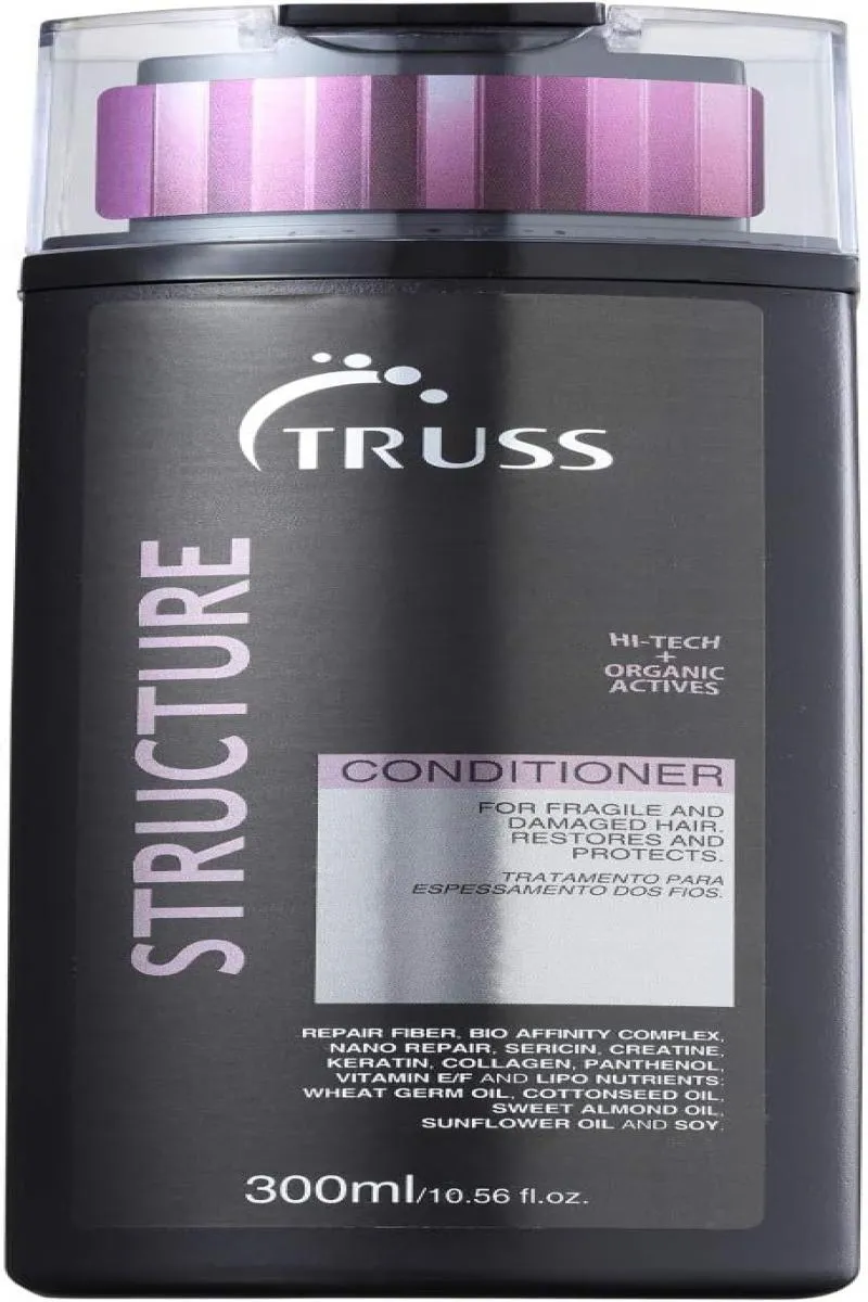Truss Structure condicionador 300ml O Truss Structure Condicionador é um tratamento fortalecedor desenvolvido para cabelos frágeis, quebradiços e com perda de massa. Sua fórmula rica em ativos reconstrutores atua diretamente na recuperação da estrutura interna dos fios, promovendo resistência, elasticidade e brilho, sem pesar ou deixar os cabelos oleosos. Benefícios:
