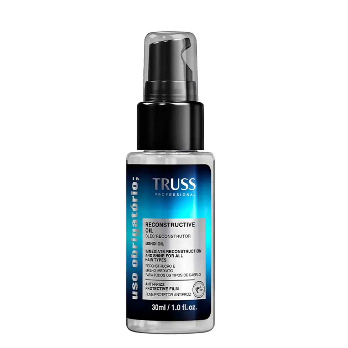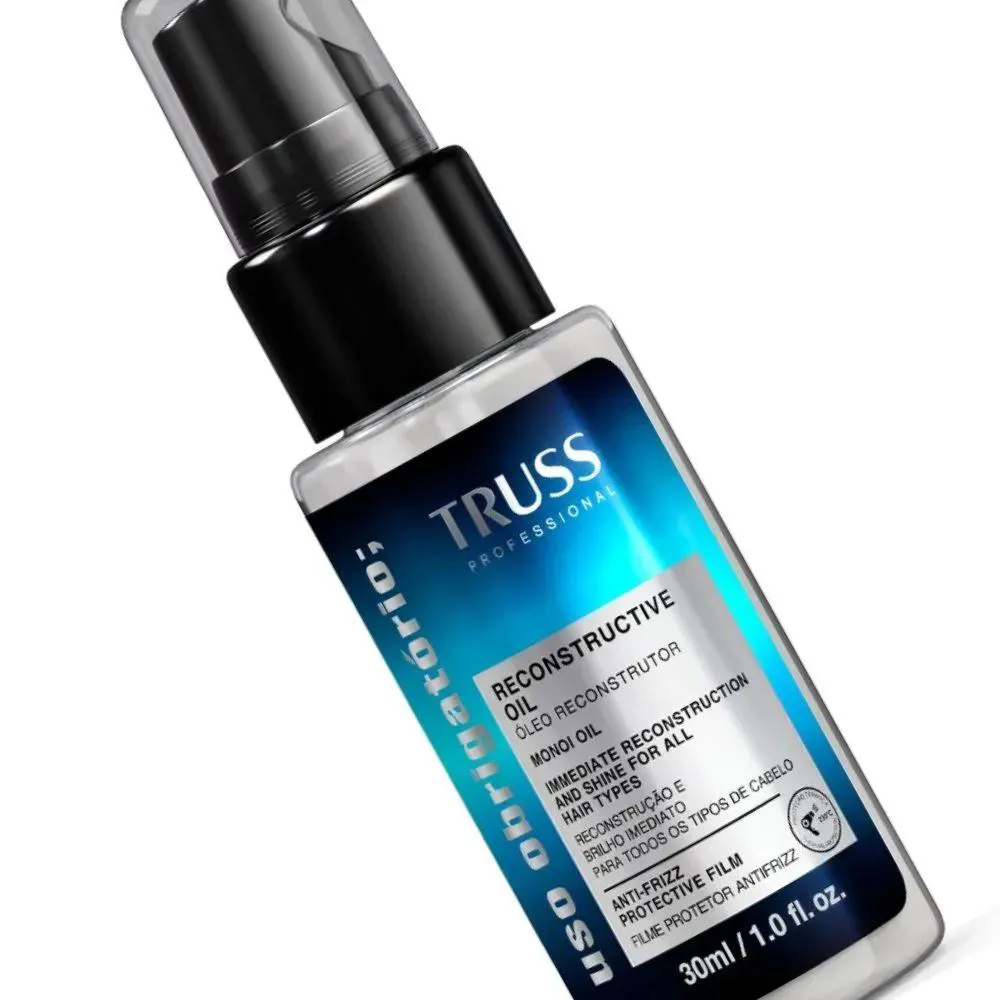 O Óleo Capilar Reconstrutor TRUSS Uso Obrigatório foi desenvolvido com alta tecnologia e presente nos melhores salões de beleza do mundo, oferecendo blindagem completa contra danos térmicos, químicos e ambientais, além de proporcionar maciez, flexibilidade e controle do frizz.