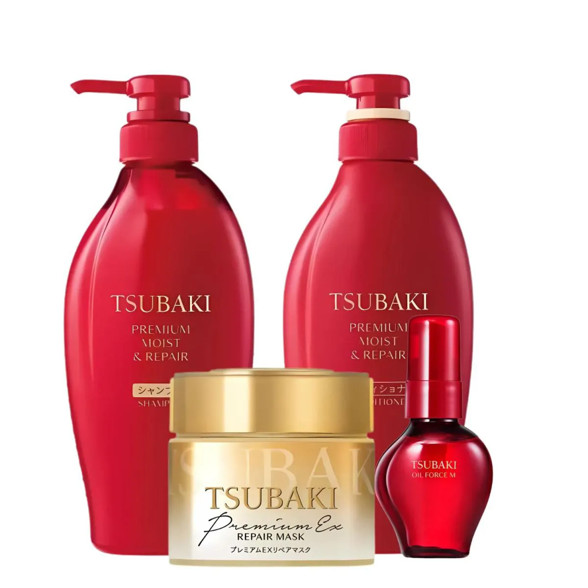 Tsubaki Premium Moist e Repair Shampoo 450ml + Condicionador 450ml + Premium Ex Repair Mascara 180g + Oleo Capilar Cam