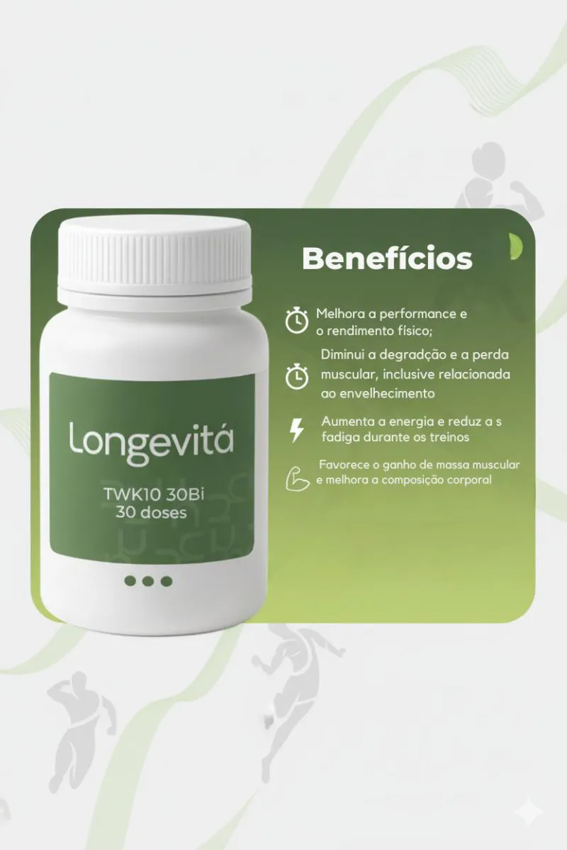 Mais energia, melhor desempenho e equilíbrio intestinal em uma dose única! TWK10™ oferece 30 bilhões de probióticos por cápsula , ajudando a transformar sua saúde de dentro para fora .Perfeito para quem busca mais disposição, melhor digestão e fortalecimento da imunidade.