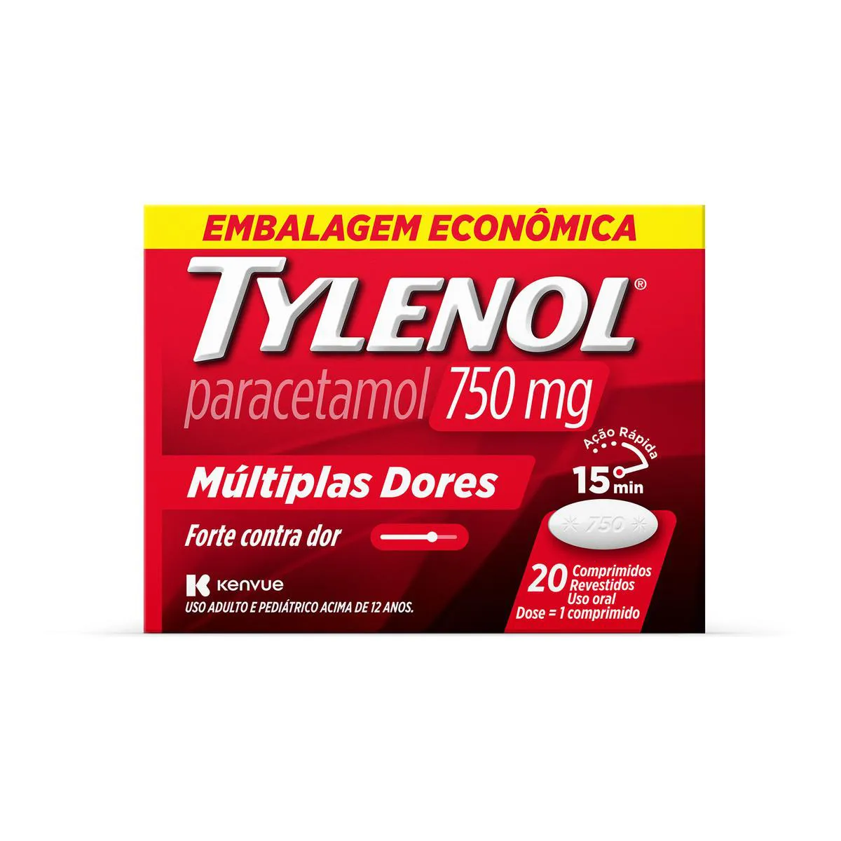 Tylenol Paracetamol 750mg Múltiplas Dores 20 comprimidos