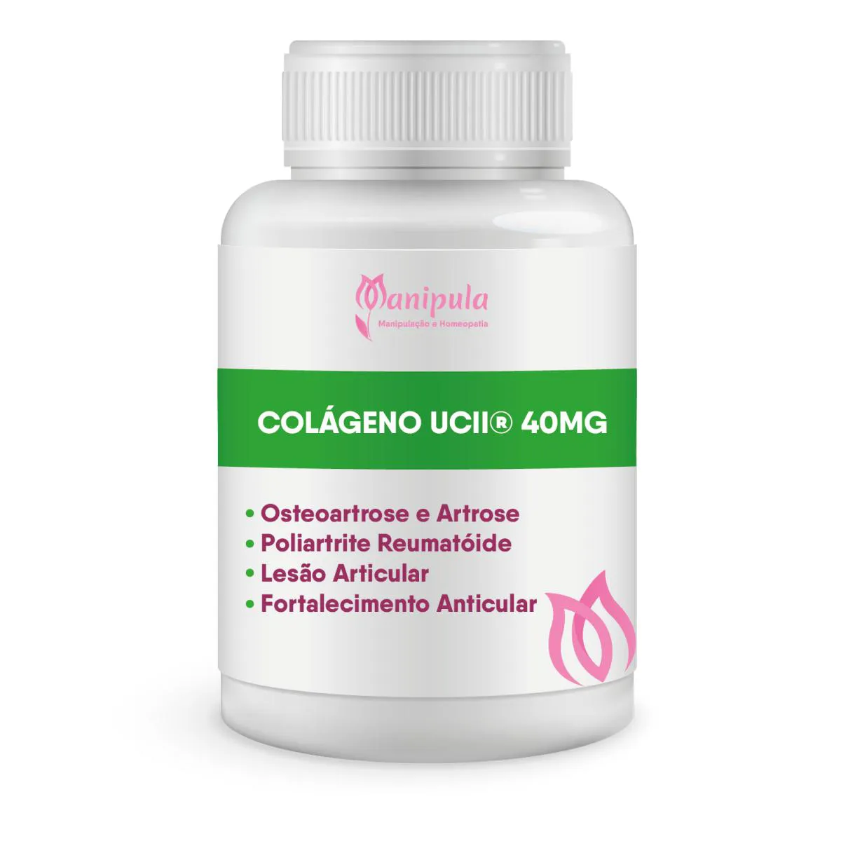 colágeno UCII®: O colágeno tipo II é a principal proteína estrutural na cartilagem que é responsável pela sua resistência, tração e firmeza. Derivado de cartilagem de frango, UC-II® consiste em colágeno tipo II não desnaturado que age juntamente com o sistema imunológico para manter as articulações saudáveis e promover a mobilidade e flexibilidade das articulações. UC-II® tem sua composição patenteada, e demonstrou a sua eficácia em estudos clínicos em humanos.
