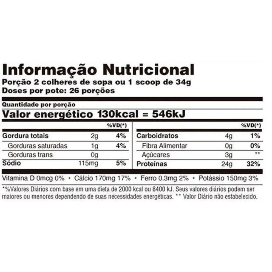 Mix de proteínas (proteína do soro do leite concentrada e ultrafiltrada, proteína do soro do leite isolada, peptídeos do soro do leite parcialmente hidrolisados e peptídeo glutamina), cacau, aroma natural, aroma artificial, edulcorante artificial aspartame. Não Contém Glúten. Contém Fenilalanina.