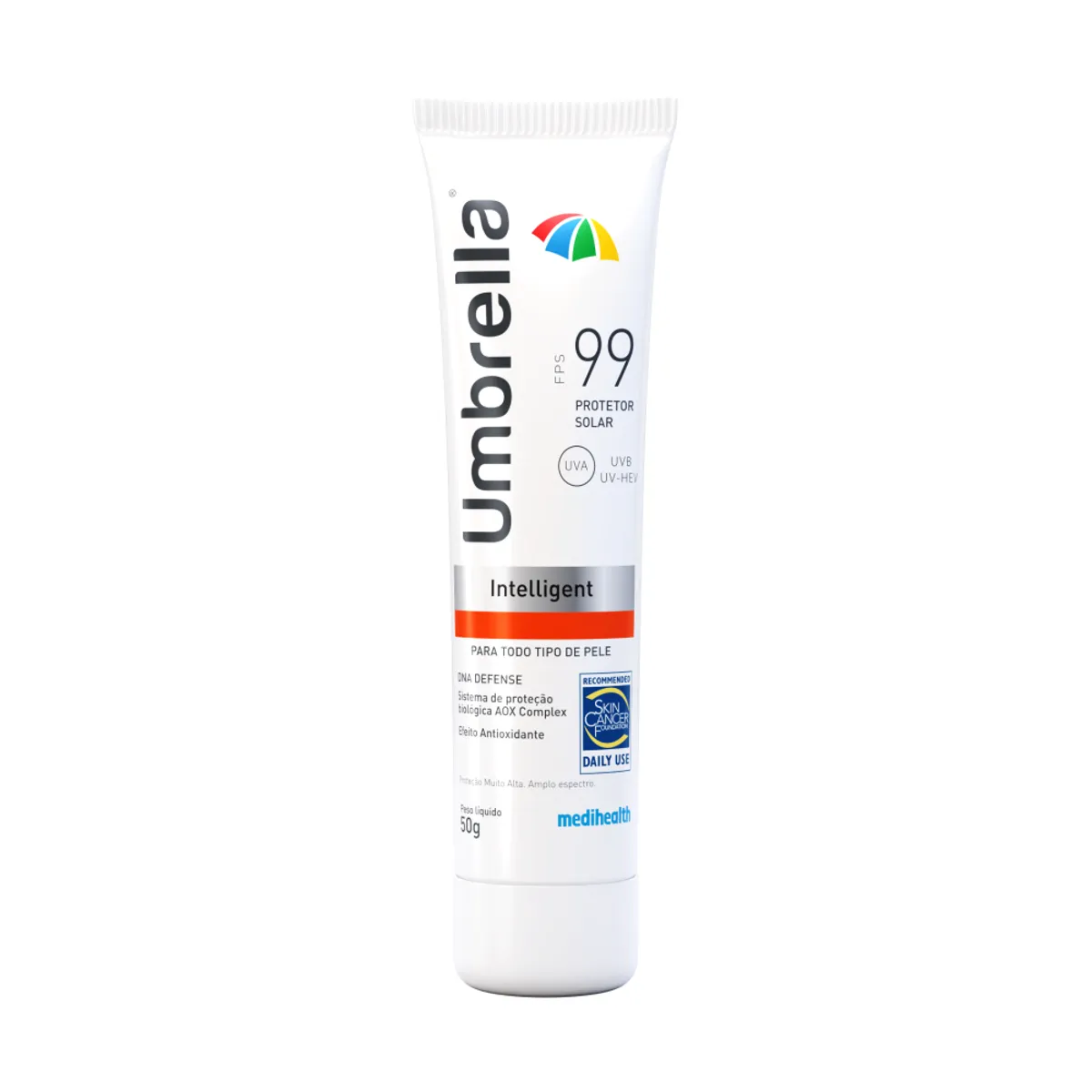 Com o selo de aprovação da Skin Cancer Foundation (organização mundial dedicada à educação sobre prevenção, detecção e tratamento do câncer de pele), o Umbrella Intelligent 99+ possui uma fórmula poderosa que além de proteger, regenera a pele.