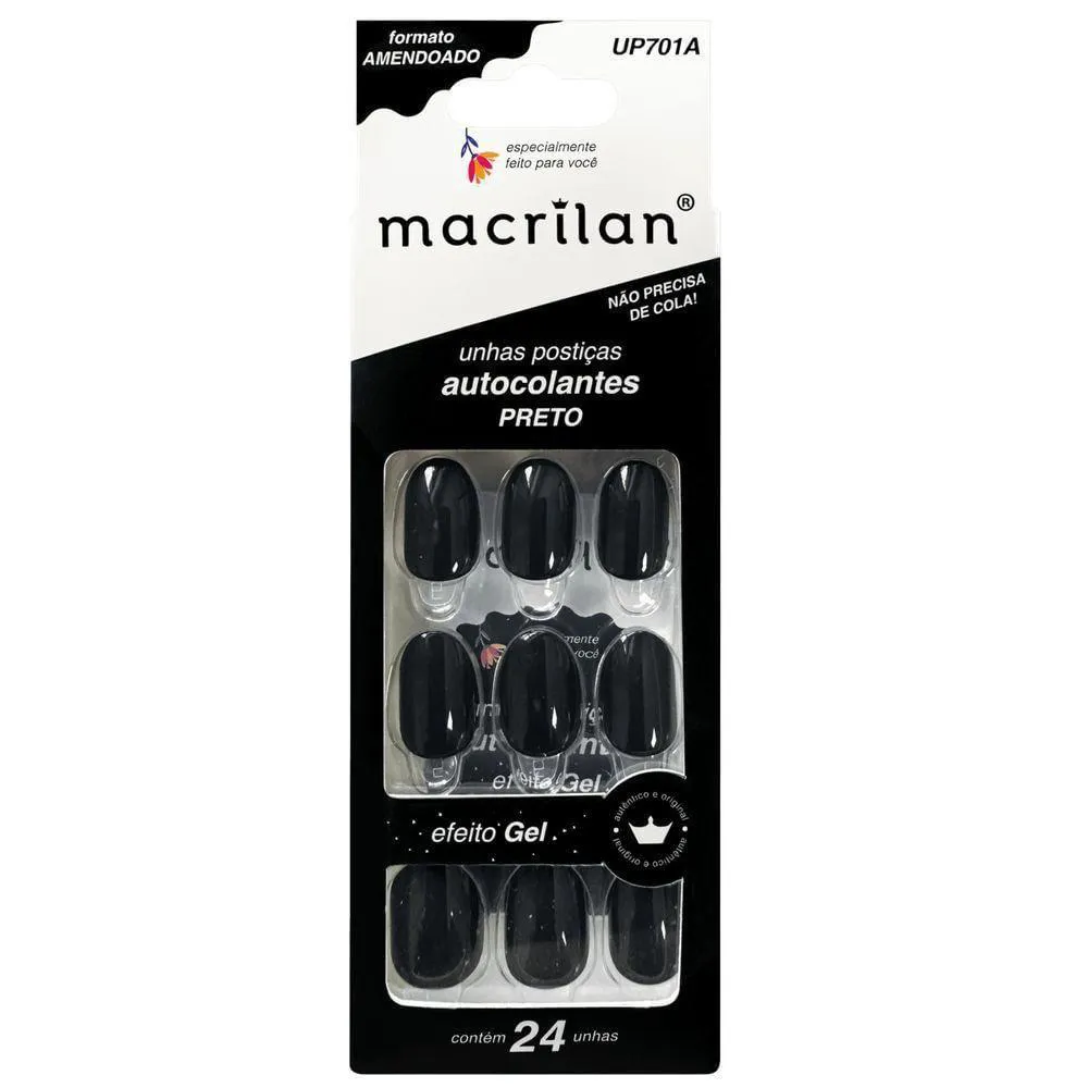 Unhas Postiças Autocolantes Macrilan Tamanho Médio Formato Amendoado Preto Up701a