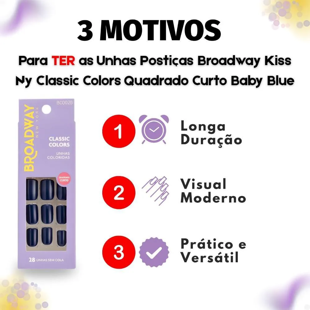 Unhas Postiças Broadway Kiss Ny Classic Colors Quadrado Curto Baby Blue Bco02B