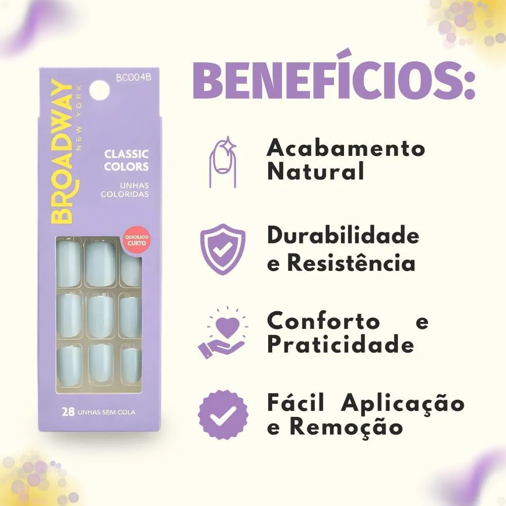 Transforme suas mãos em minutos com as Unhas Postiças Broadway Kiss Ny Classic Colors da KISS NEW YORK. Perfeitas para quem busca praticidade e um toque de elegância, estas unhas postiças oferecem um visual impecável com um acabamento profissional. Imagine ter unhas deslumbrantes em instantes, sem a necessidade de esperar horas para a secagem do esmalte. Ideal para mulheres modernas que desejam unhas perfeitas sem abrir mão da praticidade, este produto é a solução ideal para realçar sua beleza em qualquer ocasião.Benefícios Principais