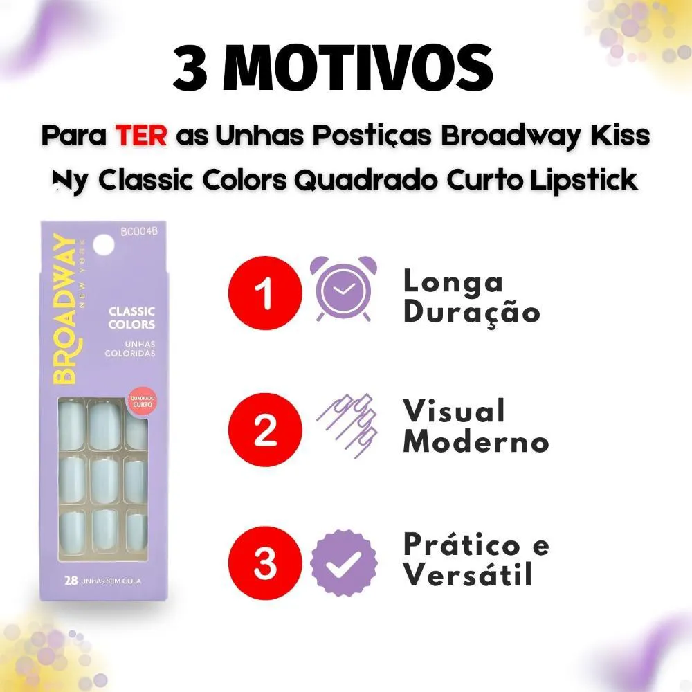 Unhas Postiças Broadway Kiss Ny Classic Colors Quadrado Curto Lipstick Bco04B