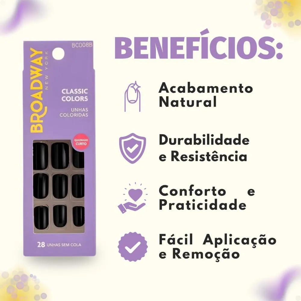Transforme suas mãos em minutos com as Unhas Postiças Broadway Kiss Ny Classic Colors da KISS NEW YORK. Perfeitas para quem busca praticidade e um toque de elegância, estas unhas postiças oferecem um visual impecável com um acabamento profissional. Imagine ter unhas deslumbrantes em instantes, sem a necessidade de esperar horas para a secagem do esmalte. Ideal para mulheres modernas que desejam unhas perfeitas sem abrir mão da praticidade, este produto é a solução ideal para realçar sua beleza em qualquer ocasião.Benefícios Principais