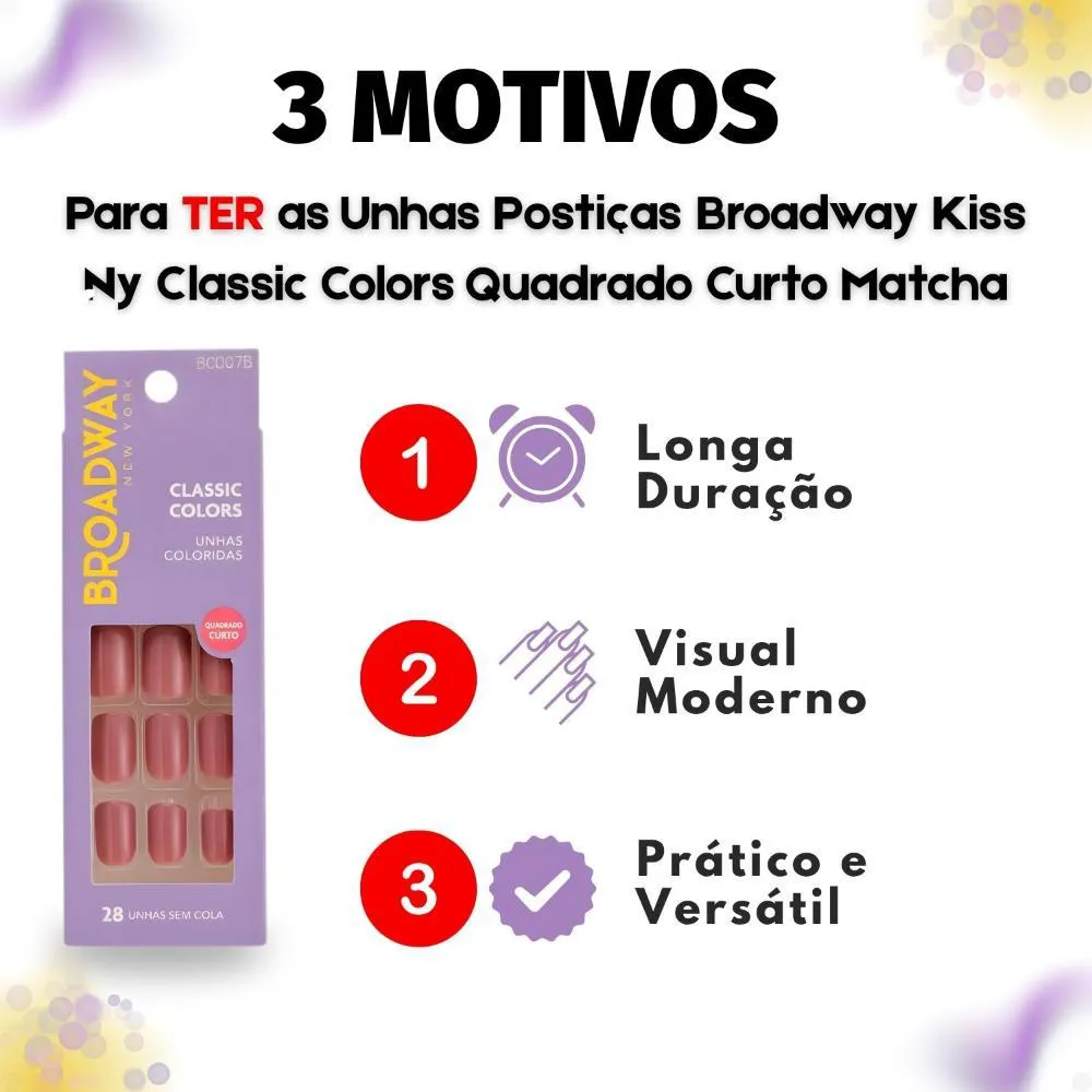 Unhas Postiças Broadway Kiss Ny Classic Colors Quadrado Curto Matcha Bco08B